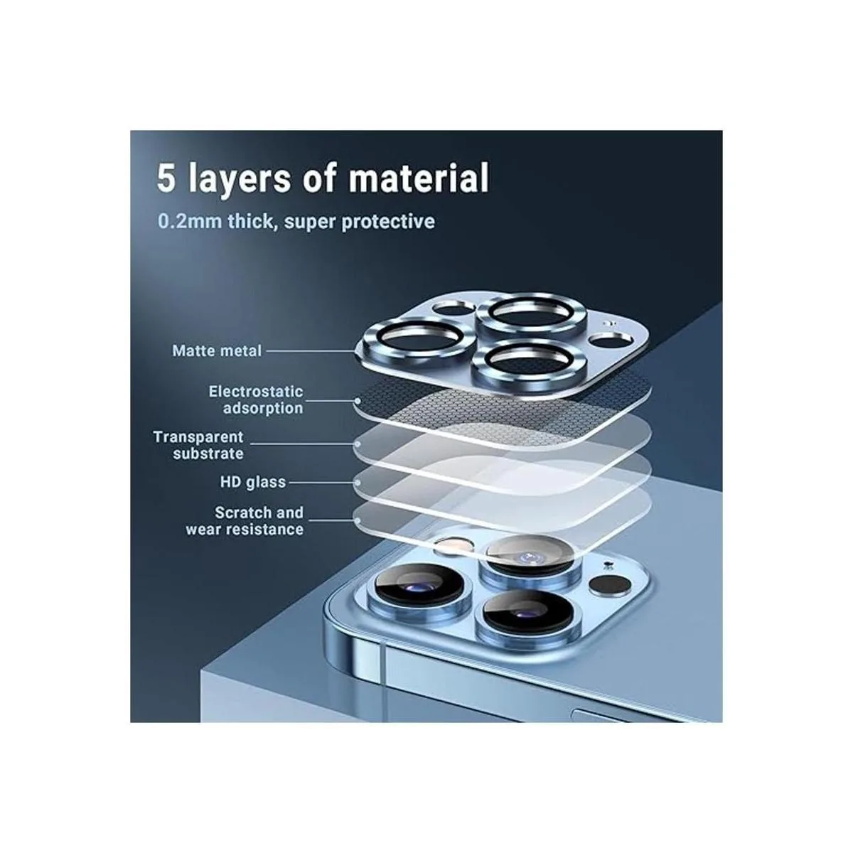 Máxima protección: se utiliza pegamento importado 3M de 0.007 in, que tiene una fuerte viscosidad y no se cae fácilmente. Tiene una estructura reforzada de 5 pliegues con mayor resistencia a los arañazos y resistencia al impacto, que puede proteger la lente de la cámara, el flash y el sensor LIDAR.