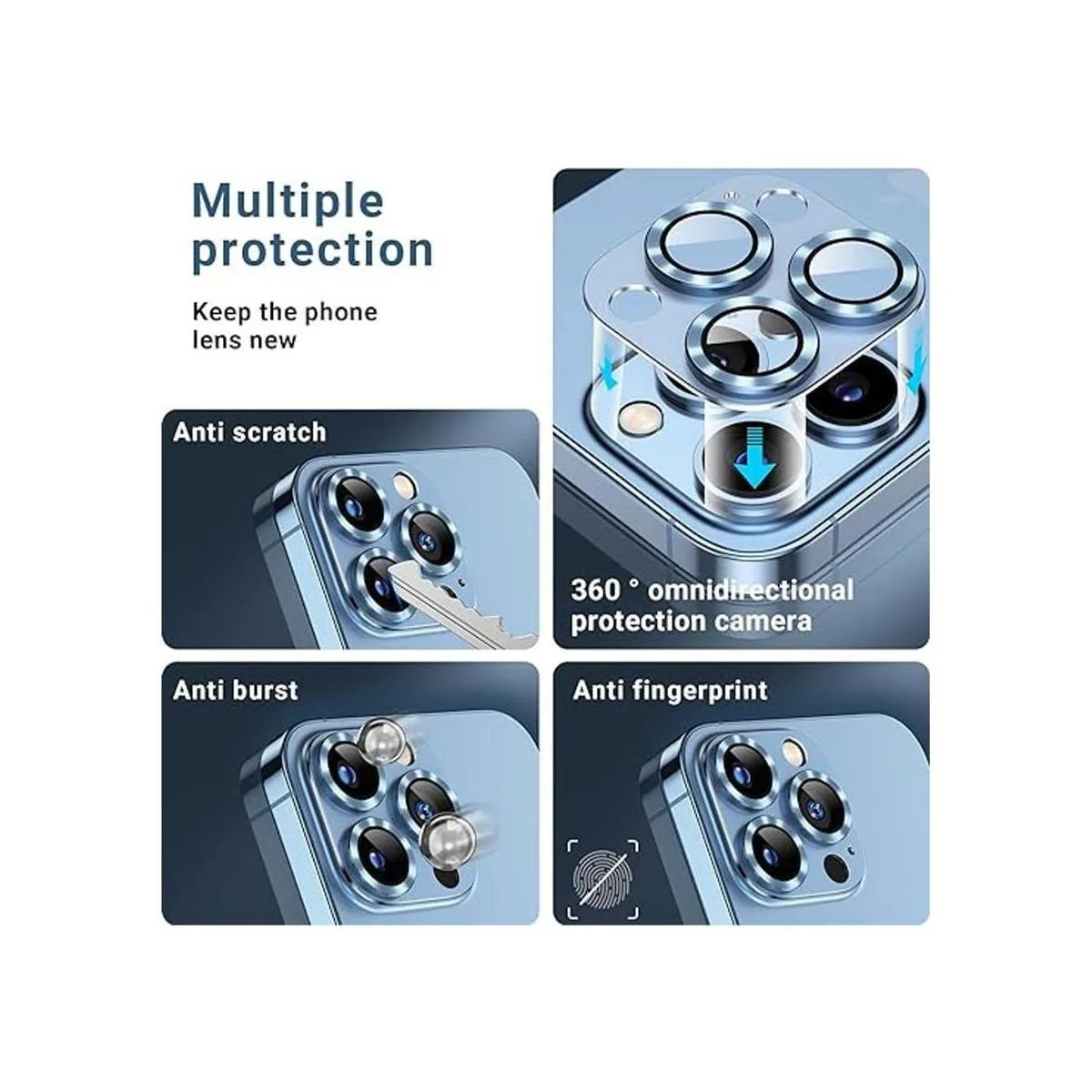 Consejo importante: película protectora para lente de cámara especialmente diseñada para iPhone 13 Pro y iPhone 13 Pro Max, incluyendo 2 películas protectoras de cámara trasera de vidrio templado de metal y 2 juegos de herramientas de limpieza. Asegúrate de que la lente esté seca antes de aplicar la película. Después de limpiar la lente trasera con una herramienta de limpieza, cubre la película protectora de la lente en la cámara y presiona suavemente para que se pegue firmemente.