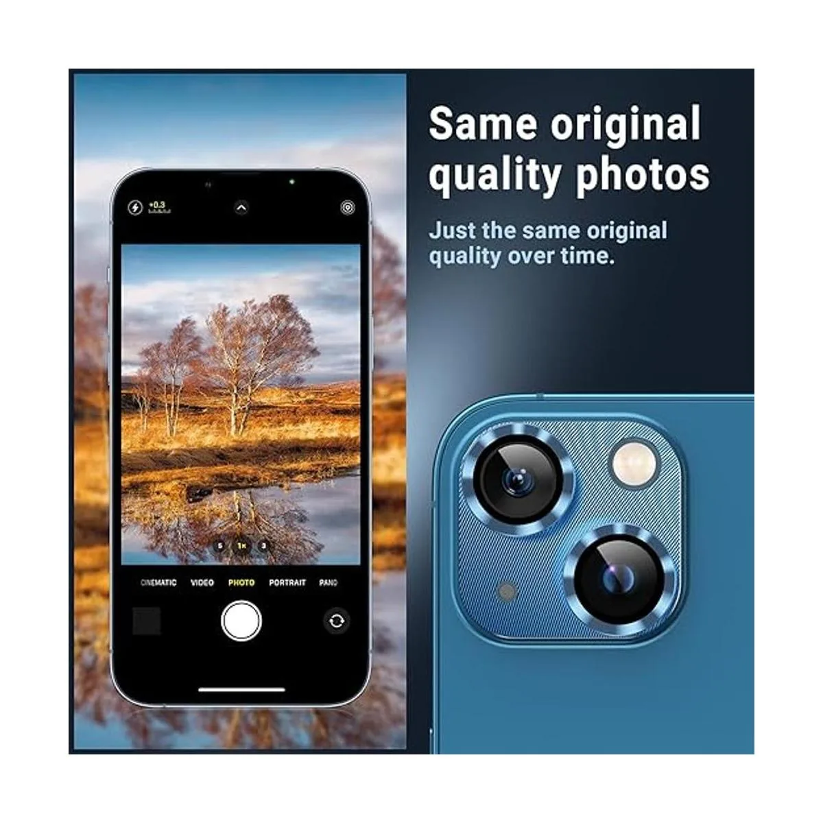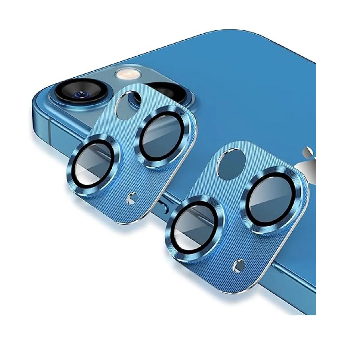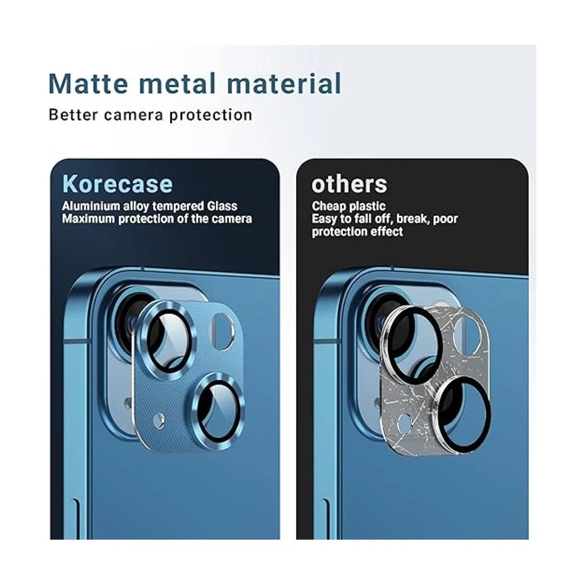 Korecase Protector de lente de cámara de metal para iPhone 13 iPhone 13 Mini, cubierta de vidrio templado, fuerte adherencia, dureza 9H, resistente a los arañazos, película de lente trasera de cámara, color azul