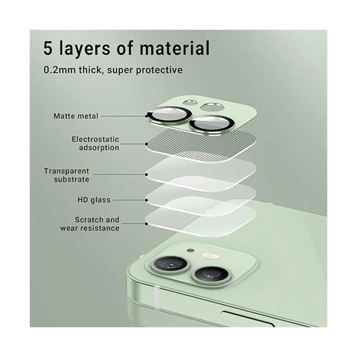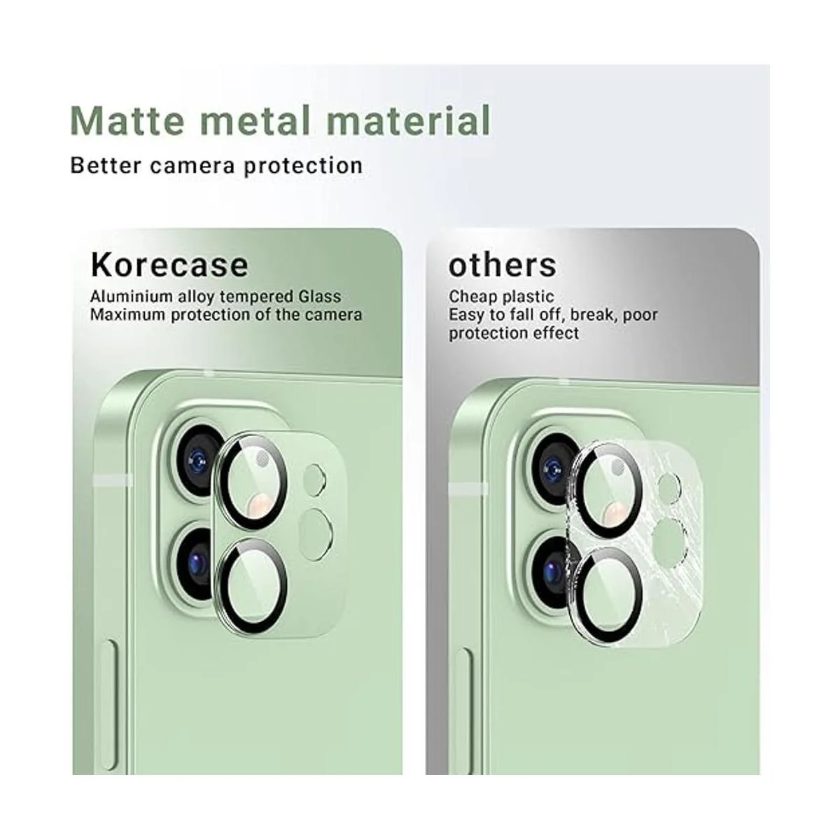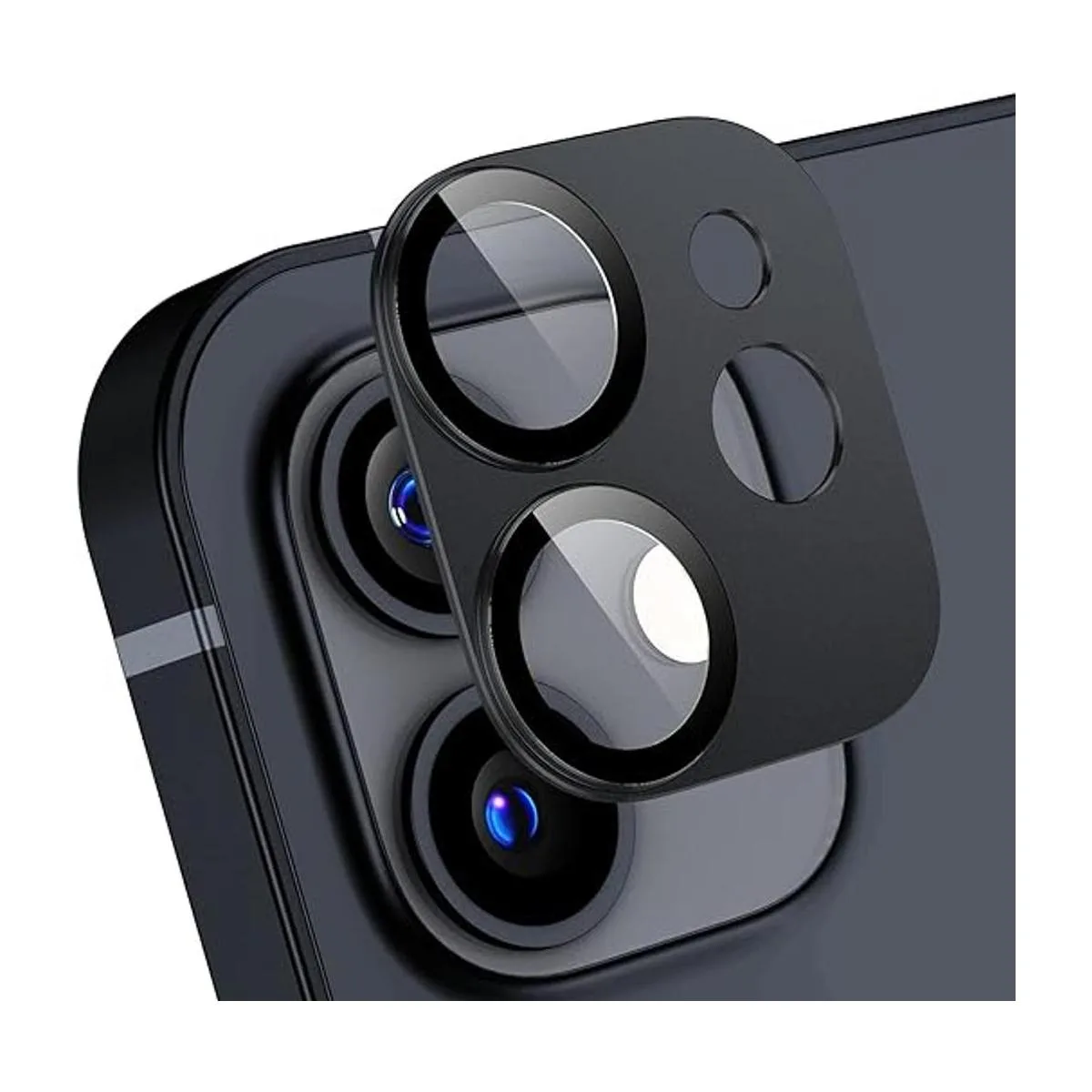 Korecase Protector de lente de cámara para iPhone 12, película de metal de aluminio, cubierta de pantalla de vidrio templado de dureza 9H, sin burbujas, fuerte adherencia, compatible con fundas, color negro