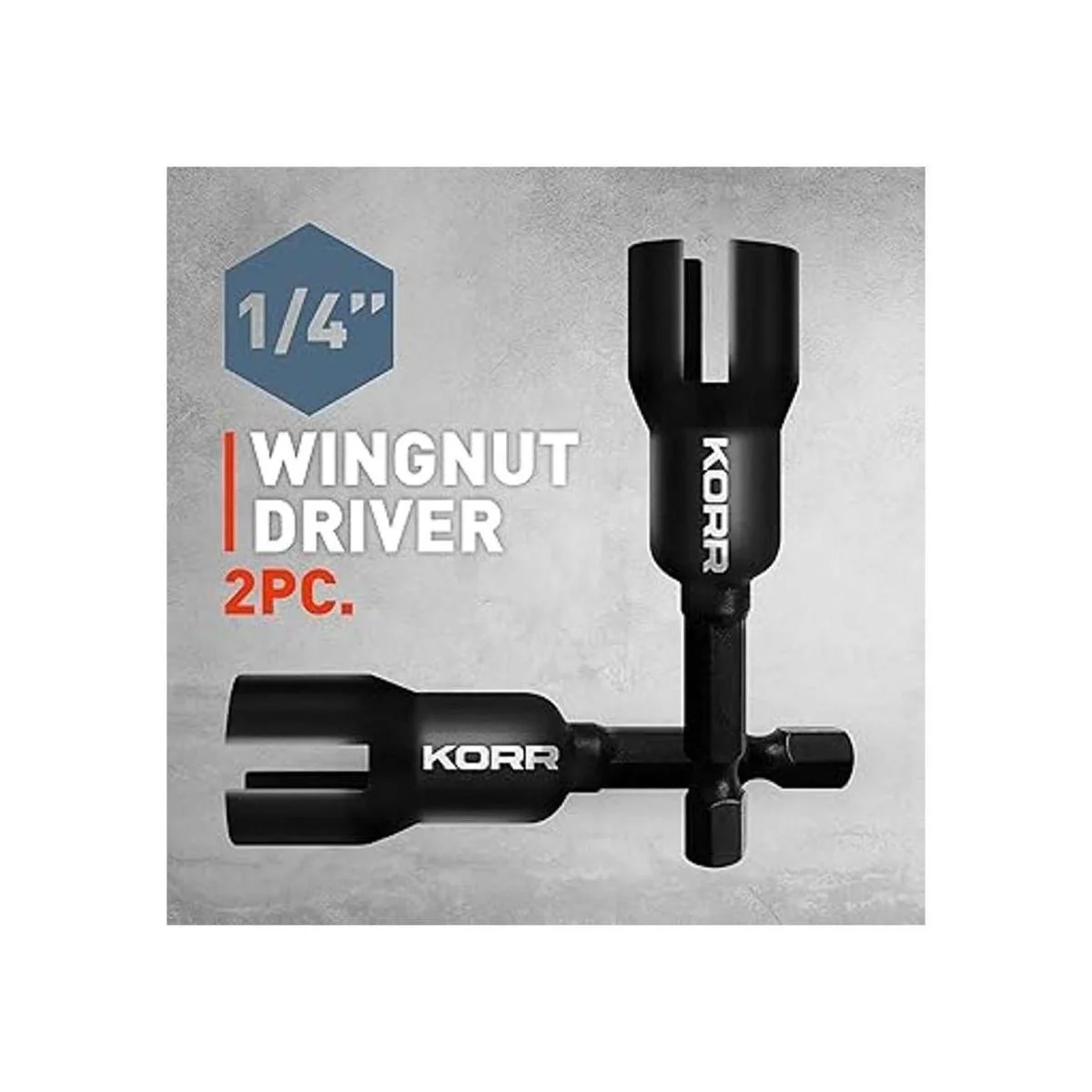 KORR Tools KIBPP027 Paquete de 2 destornilladores de tuerca de ala, tuercas de ala ranura, herramientas de llaves de casquillo, vástago hexagonal de 14 pulgada para tuercas de panel, tornillos de ojo, pernos de gancho C
