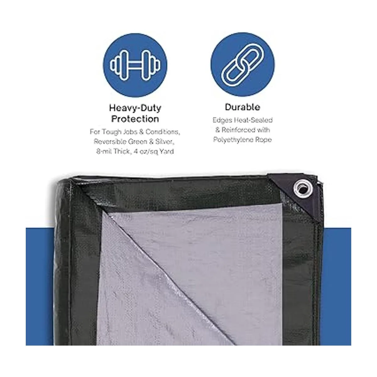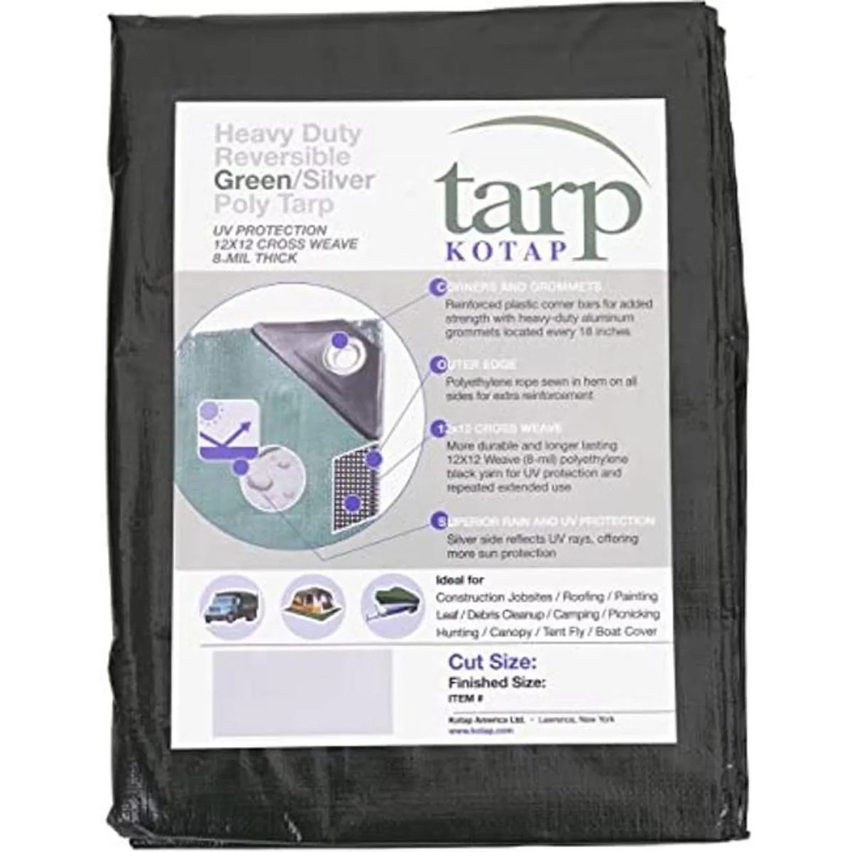 Kotap Lona de polietileno de 10 x 10 pies, resistente, tejido cruzado de 12 x 12, de 8mil, reversible, color verde y plateado. Artículo TGS1010