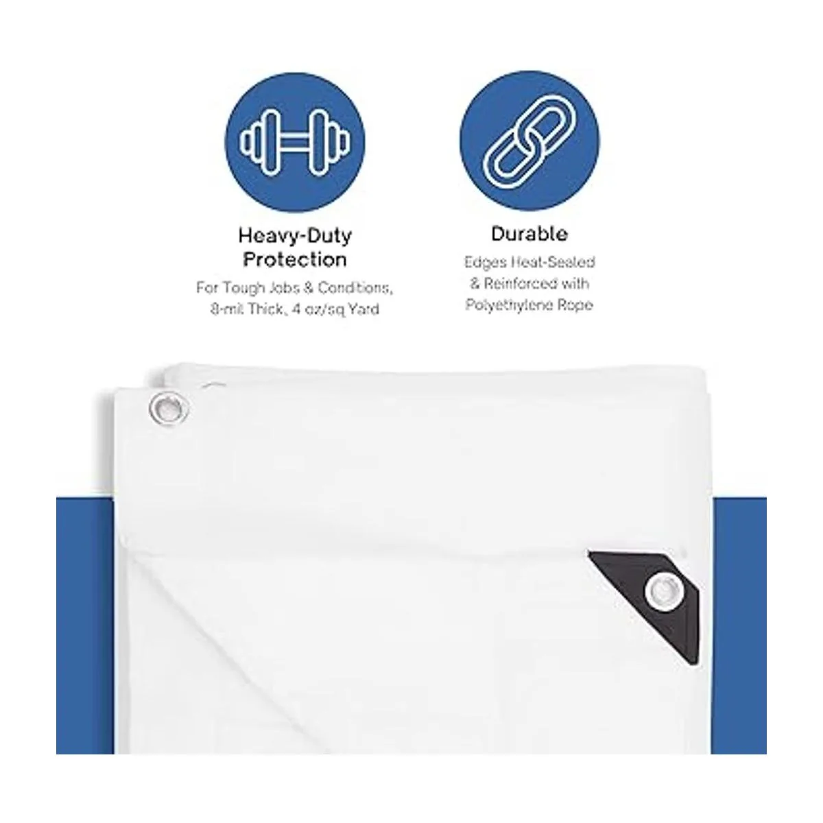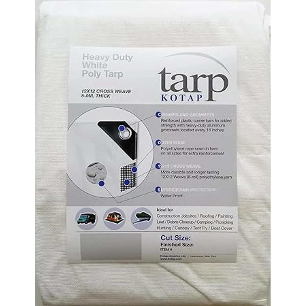 Kotap TRW0820 Lona de polietileno resistente de 8 mil con protección UV, 8 pies X 20 pies, blanco