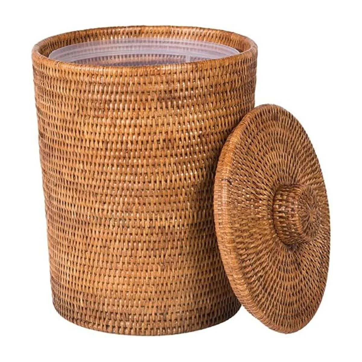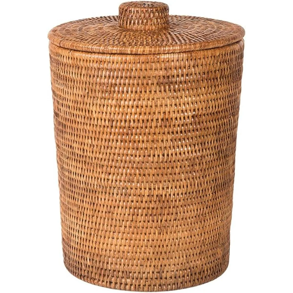 KOUBOO la Jolla cesto redondo de mimbre cesto de residuos con inserto de plástico y tapa, grande, honeybrown para recámara, sala de estar y baño