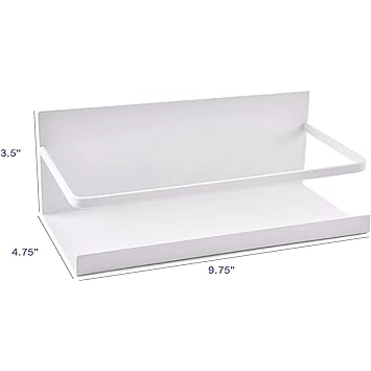Incluye 2 estantes magnéticos blancos para especias. 9.75 pulgadas de largo x 4.75 pulgadas de ancho x 3.50 pulgadas de alto