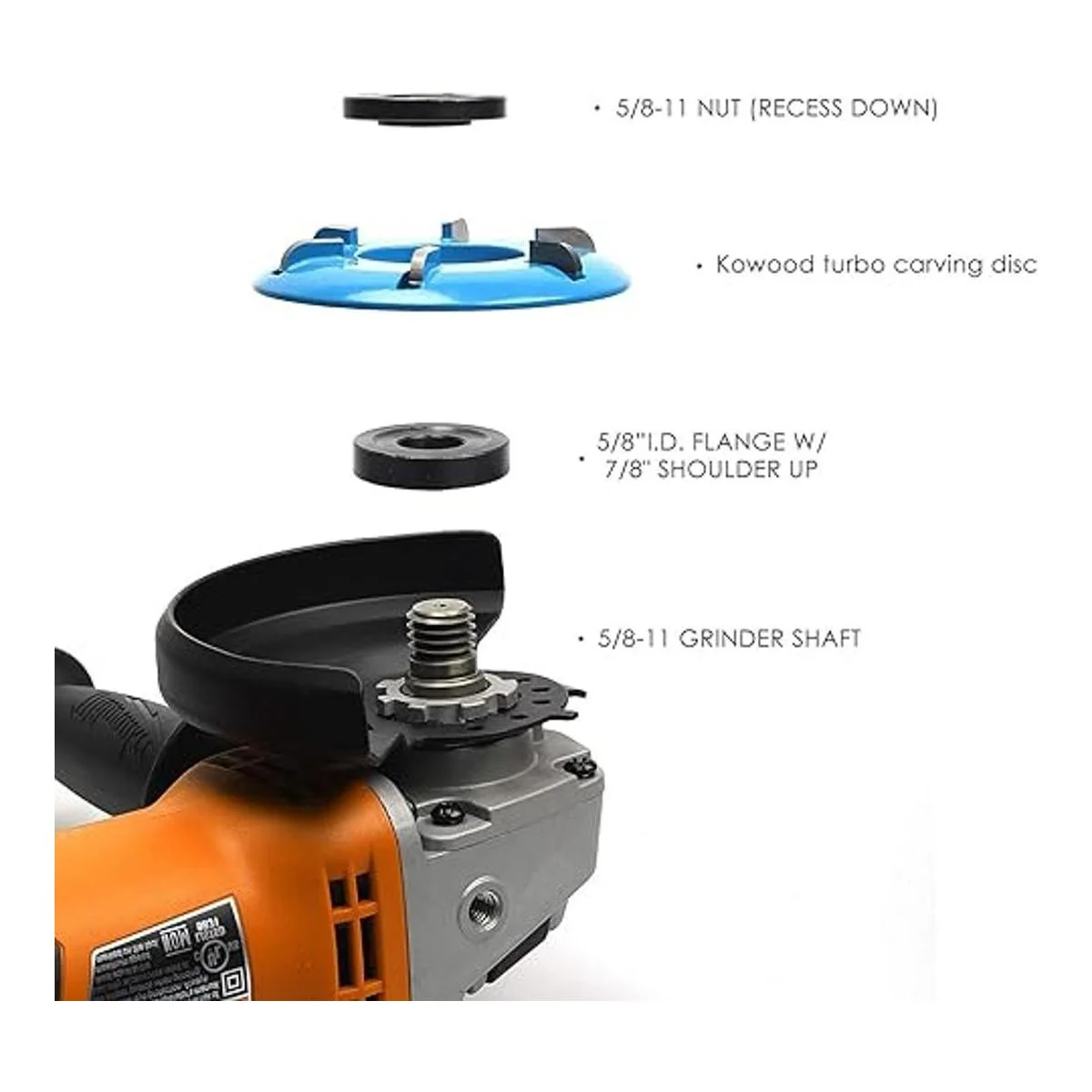 Tamaño de la tuerca exterior: muy adecuado para instalar discos de tallado de madera KOWOOD en amoladora angular, 5/811, apto para todas las amoladoras de 41/2, 5 y 7 que tienen un eje roscado de 5/811 no apto para Milwaukee de 41/2