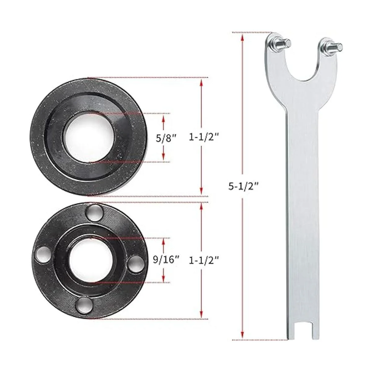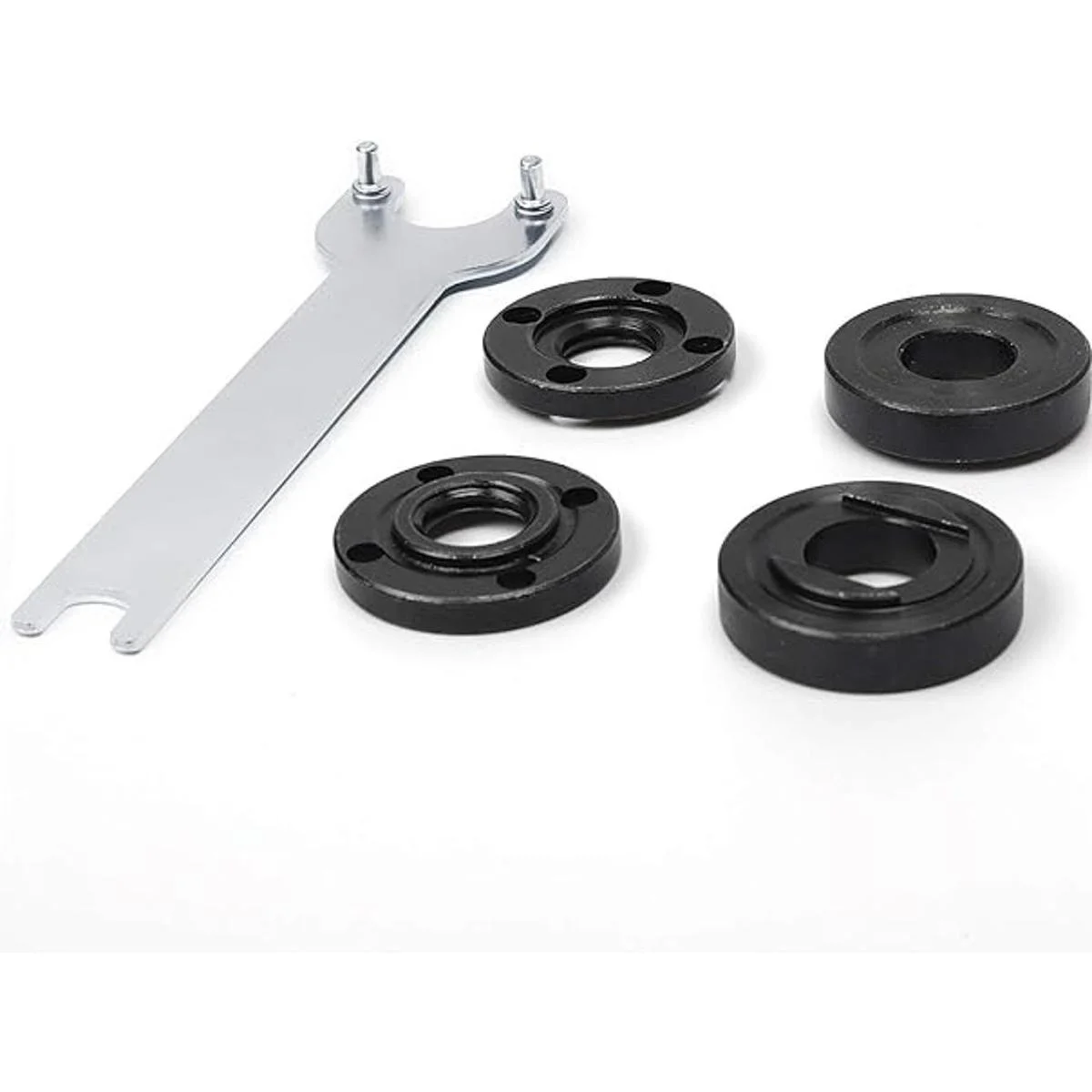 1 llave de amoladora angular, 2 tuercas de brida de amoladora angular interior, 2 tuercas de brida de amoladora angular exterior. Comprueba el tamaño y la compatibilidad antes de realizar el pedido