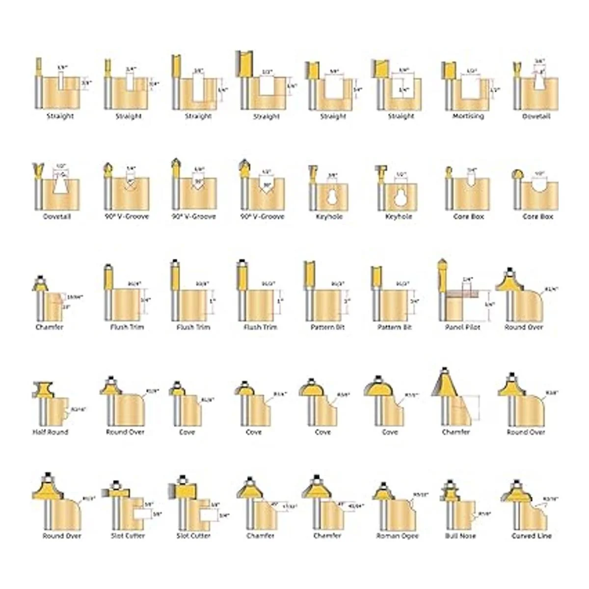 KOWOOD Juego de 40 brocas de enrutador, vástago de 14 pulgadas, kit de brocas experto de 40 A.