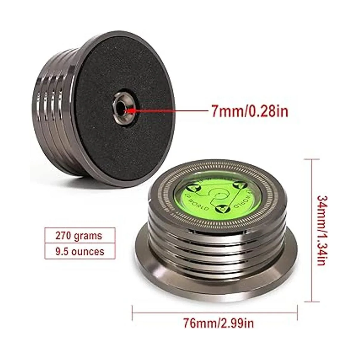 Peso adecuado: 9.52 oz/9.5 onzas de peso, evita que los discos se agiten y reducen la vibración, sin sobrecarga ni detener los rodamientos de la plataforma giratoria, estabiliza la velocidad de registro y mantiene el nivel de tu LP.