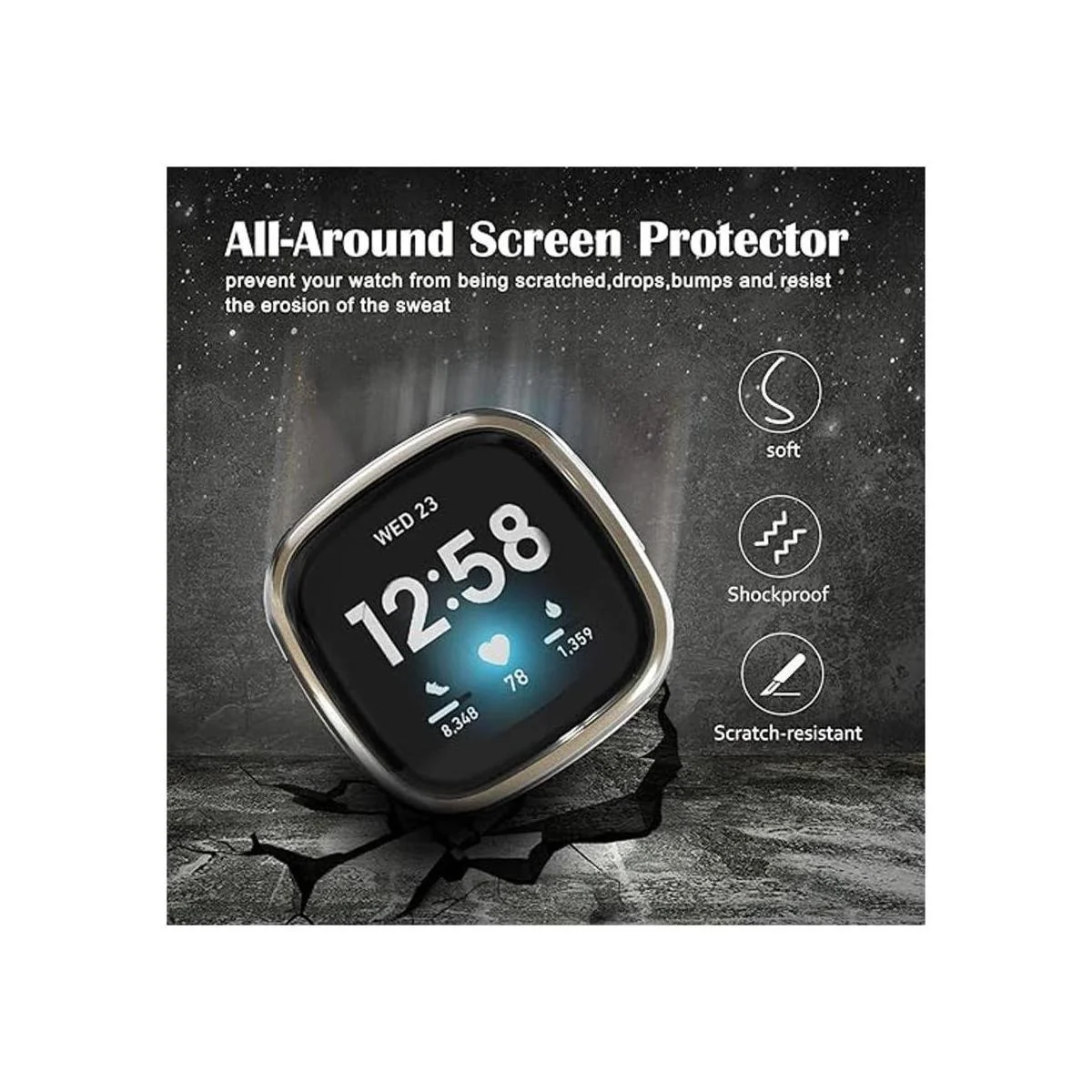 Excelente resistencia a los arañazos: con el diseño de cobertura completa de nuestra cubierta protectora de pantalla Sense y Versa 3, le dará a tu reloj Sense y Versa 3 la mejor protección contra aceite, huellas dactilares, roturas y otros arañazos del uso diario.