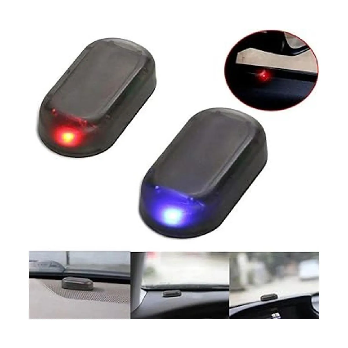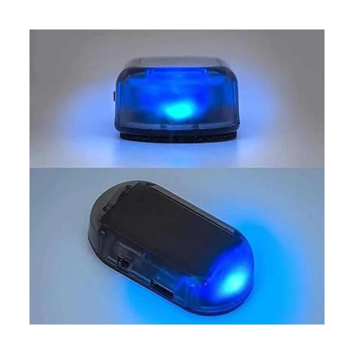 Kqiang 2 piezas de energía solar simulada para automóvil, alarma simulada, alarma antirrobo, luz LED intermitente, lámpara falsa azul rojo