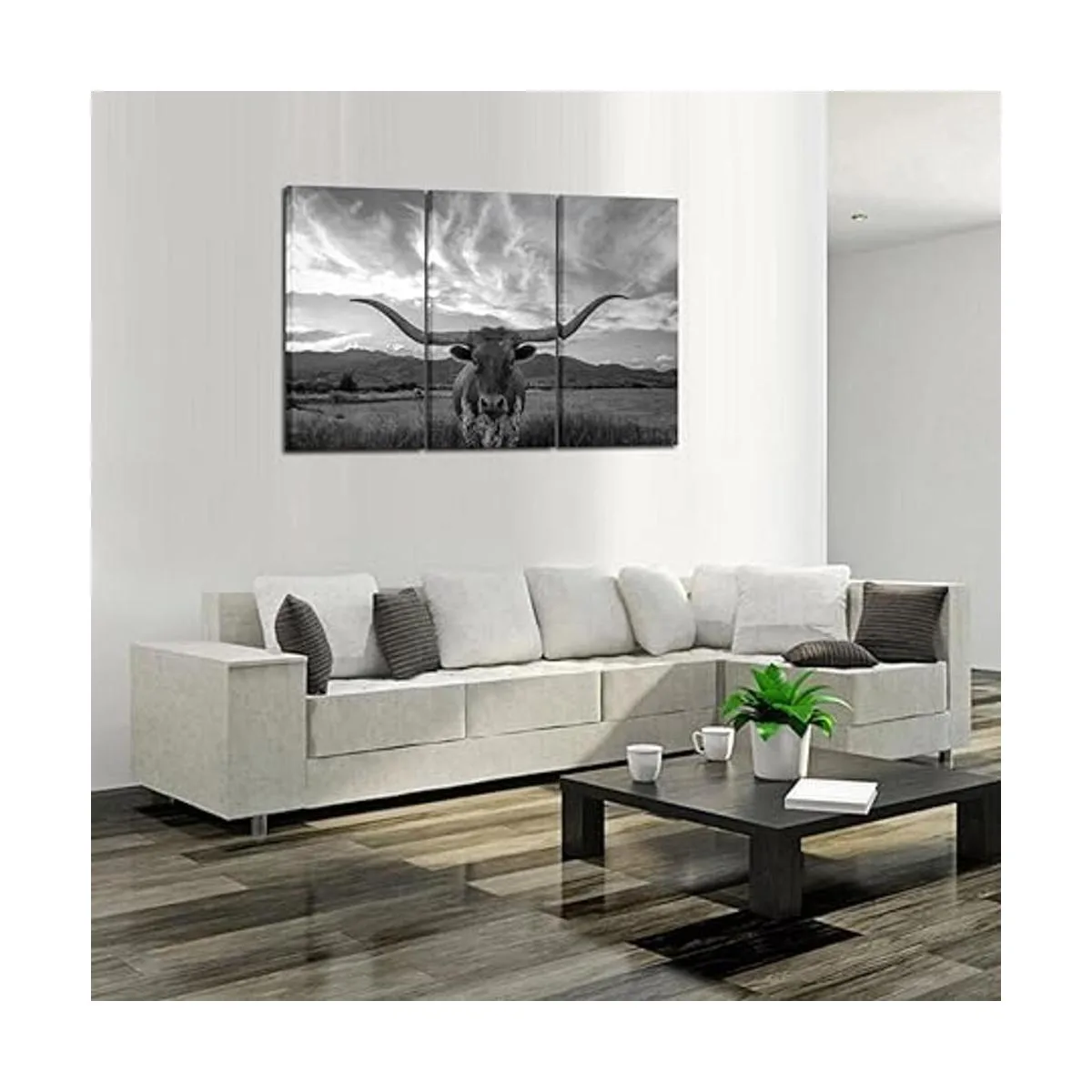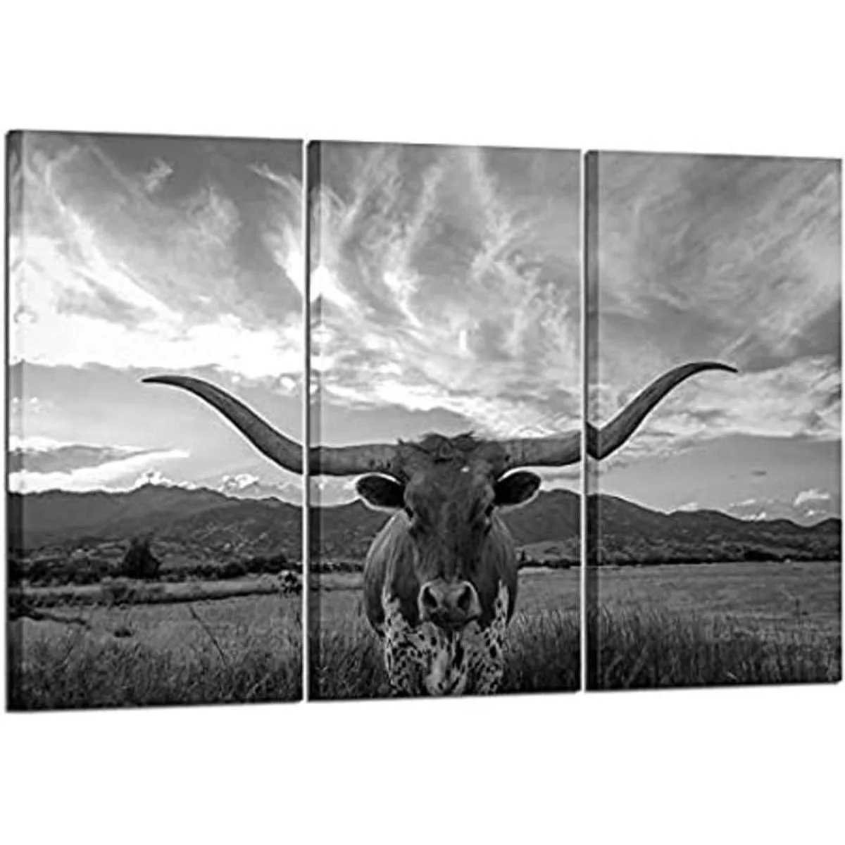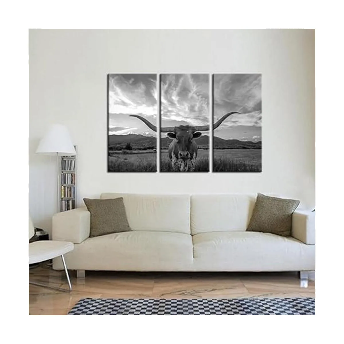 Kreative Arts Lienzo grande y moderno para la decoración del hogar y la oficina, imágenes de animales en lienzo, impresiones en lienzo de cuerno largo de Texas para decoración de pared, 16 x 32 pulgadas x 3 piezas