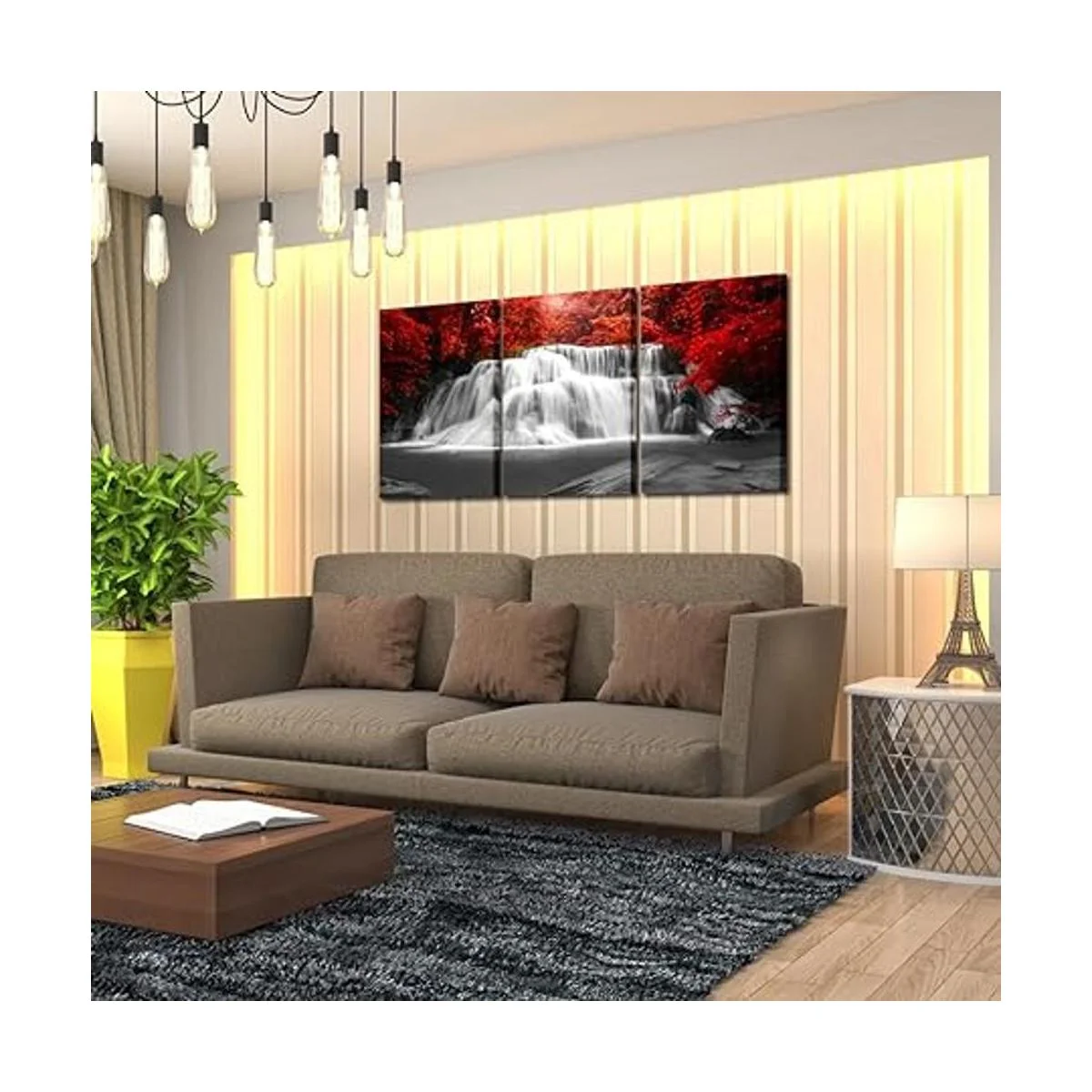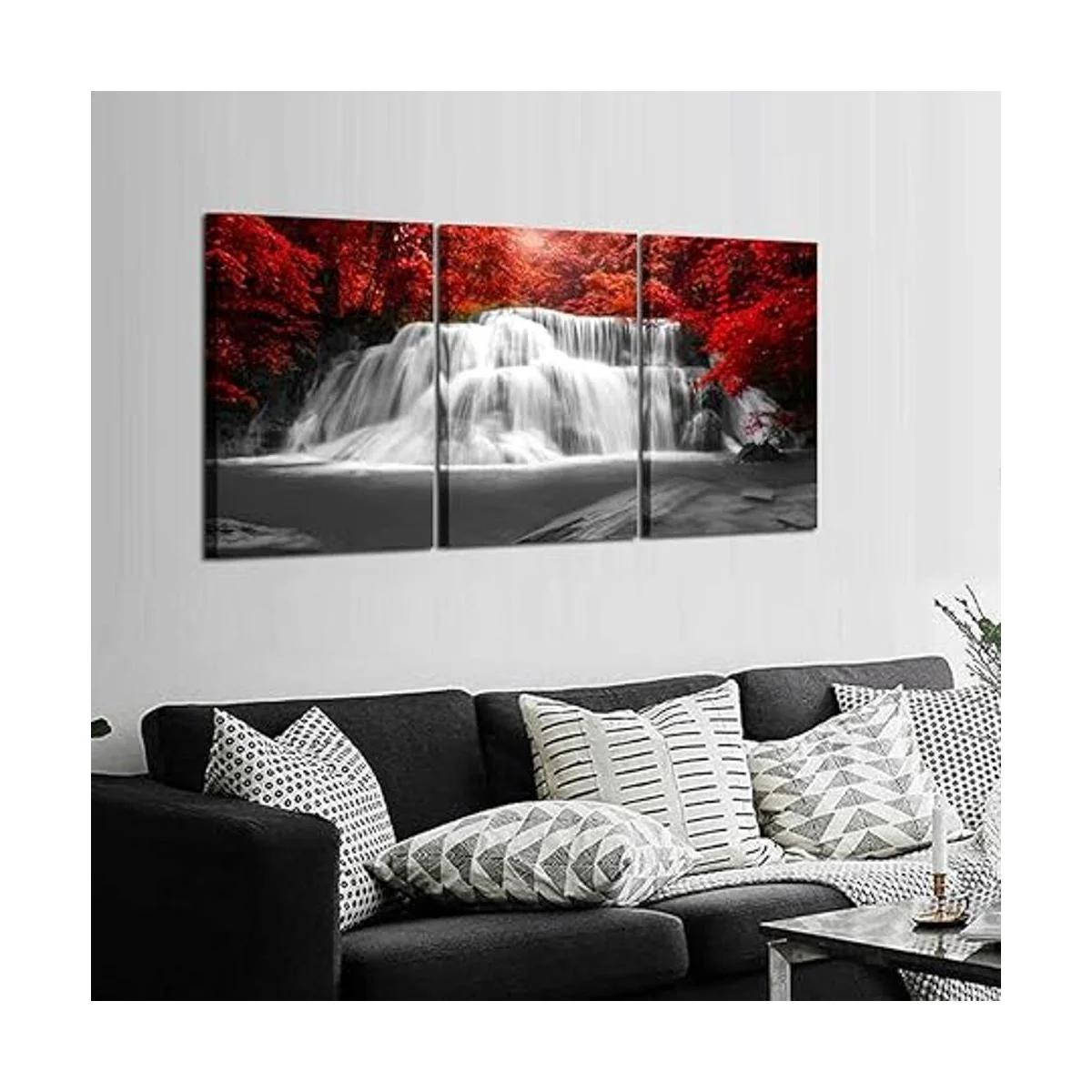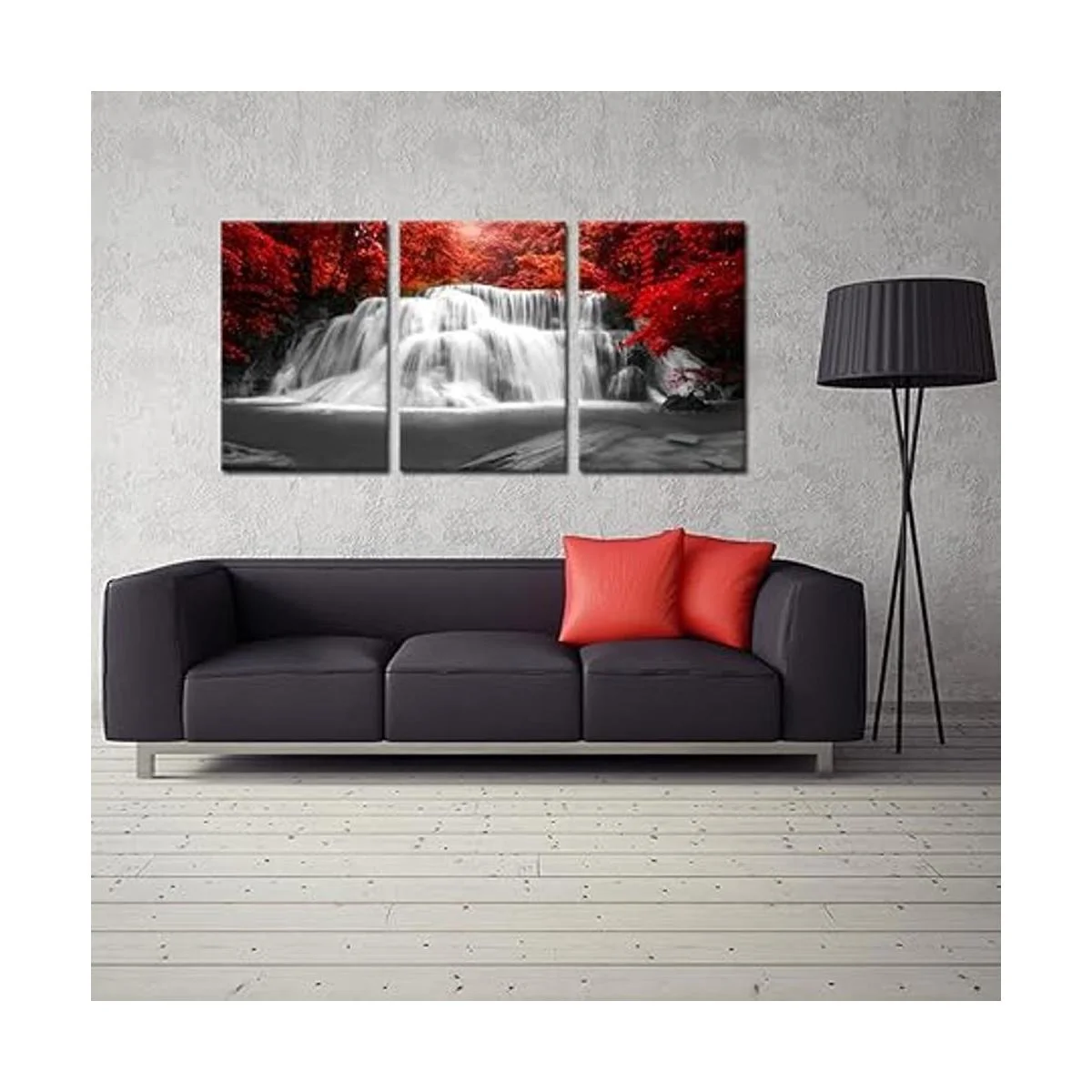 Kreative Arts Lienzo para pared, diseño de cascada, color negro, blanco y rojo, 3 piezas de madera roja, cuadros enmarcados para decoración de oficina y hogar, listo para colgar, 16 x 24 pulgadas x 3 piezas
