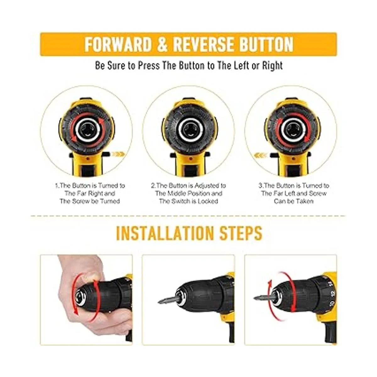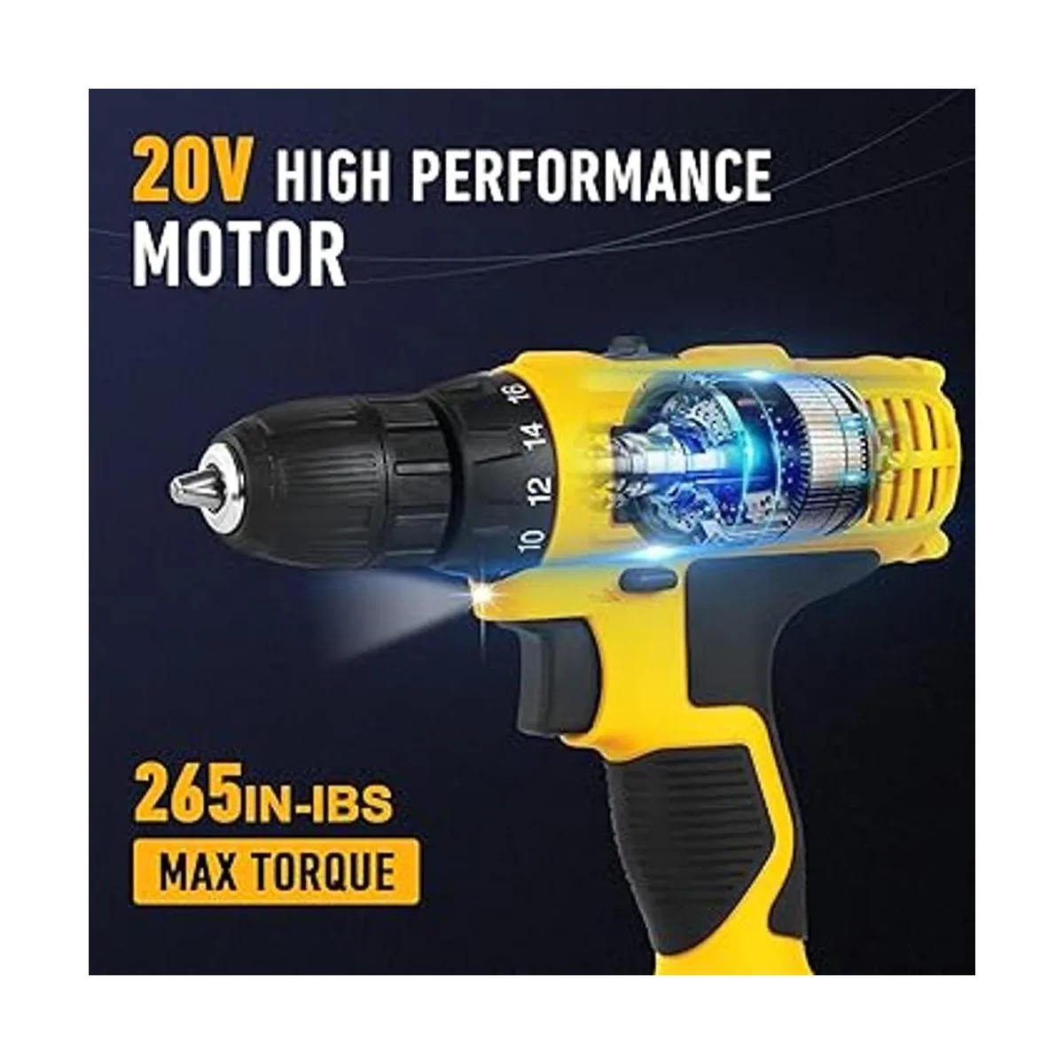 Batería de 2000 mAh: este taladro inalámbrico es adecuado para uso doméstico con una batería y cargador de 20 V 2.0 Ah.