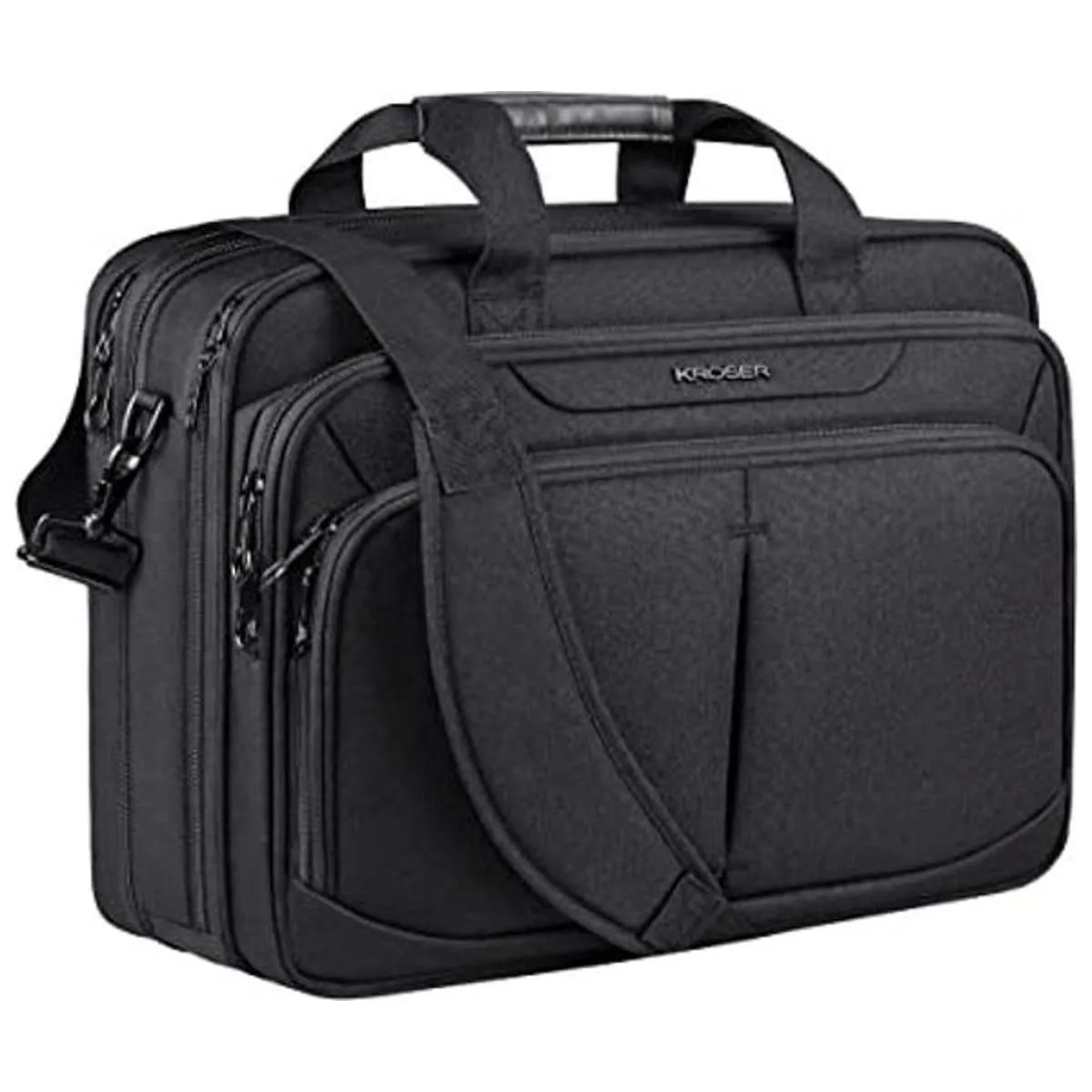 KROSER Bolsa para laptop expandible ligera para laptop de 17.3 pulgadas, bolsa de trabajo de negocios de primera calidad, bolsa de mensajero repelente al agua con bolsillos RFID para escuela, viajes, mujereshombres, negro