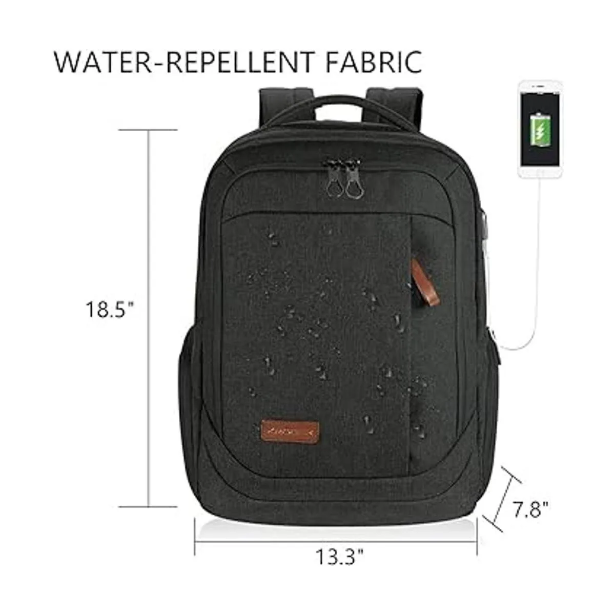 Material de alta calidad: la mochila para portátil está hecha de tela de poliéster respetuosa con el medio ambiente con nueva función de repelente al agua, que es muy duradera. Dimensiones: 18.5 x 13.3 x 7.8 pulgadas. Peso: 2.64 libras.