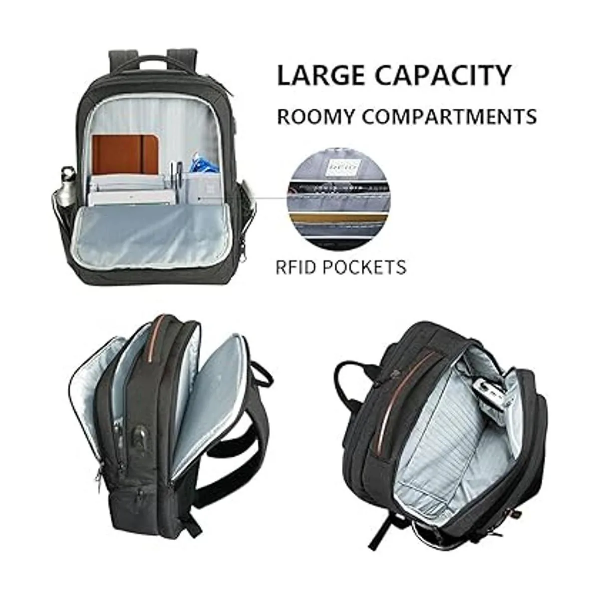 Los compartimentos más grandes y espaciosos pueden proporcionar espacio separado para el ordenador, iPad, archivos A4, cartera, ropa, banco de energía y más tus artículos. Las dimensiones del organizador se adaptan a portátiles de hasta 17,3 pulgadas. Por favor aviso: esta no es una mochila pequeña, es grande y con gran capacidad.