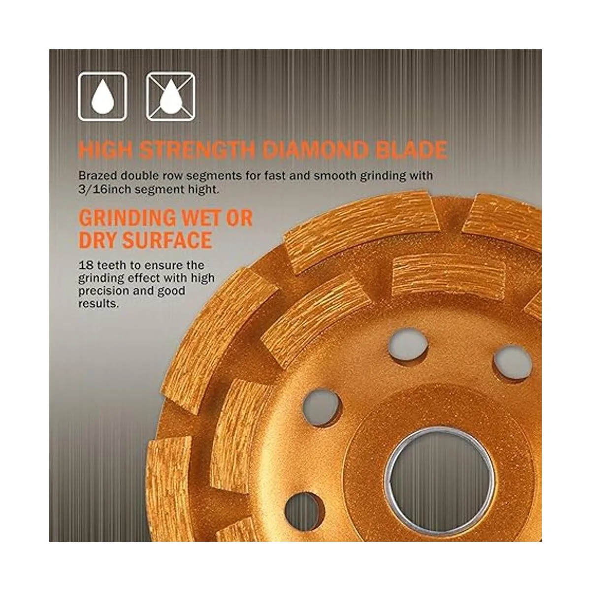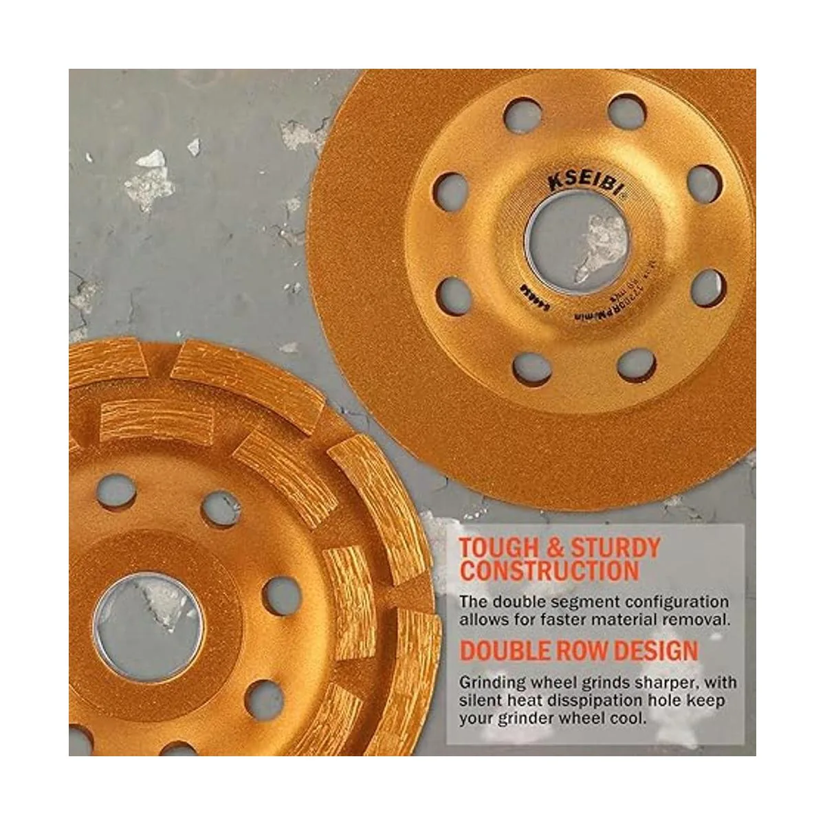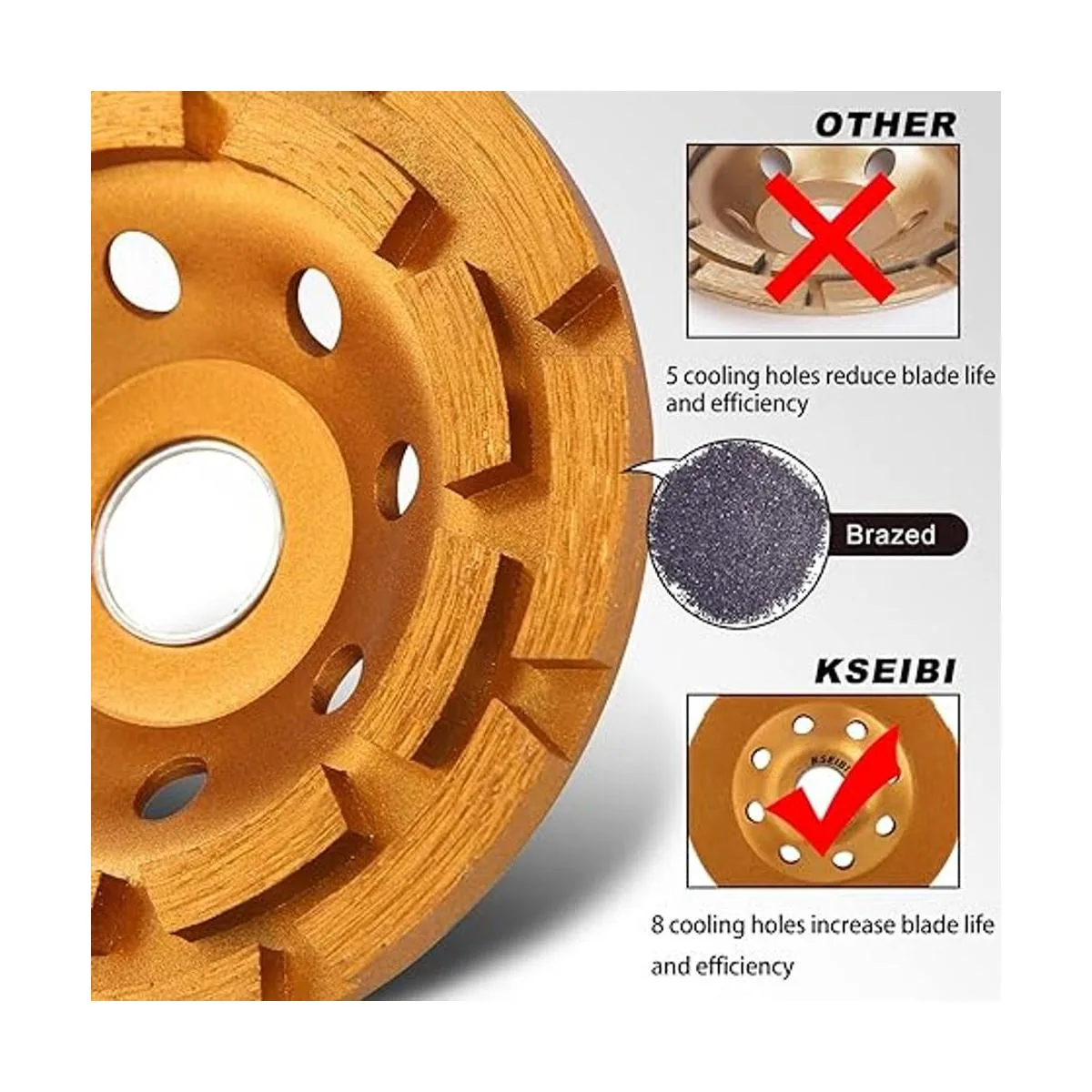 Kseibi 644030 rueda de Molienda con copa de diamante de doble fila, dorada, de 4 a 12 pulgadas