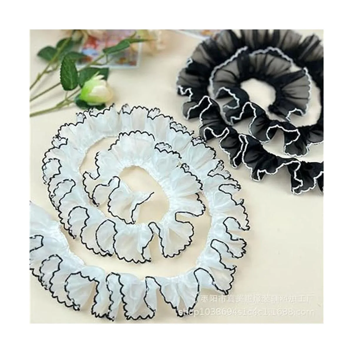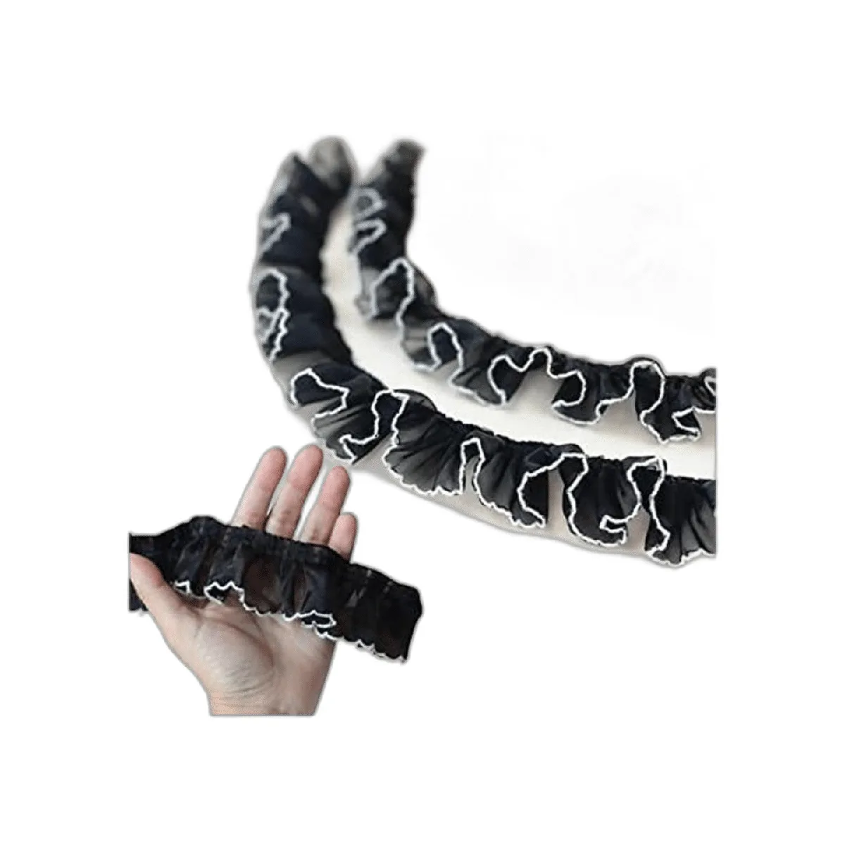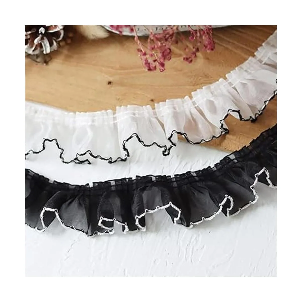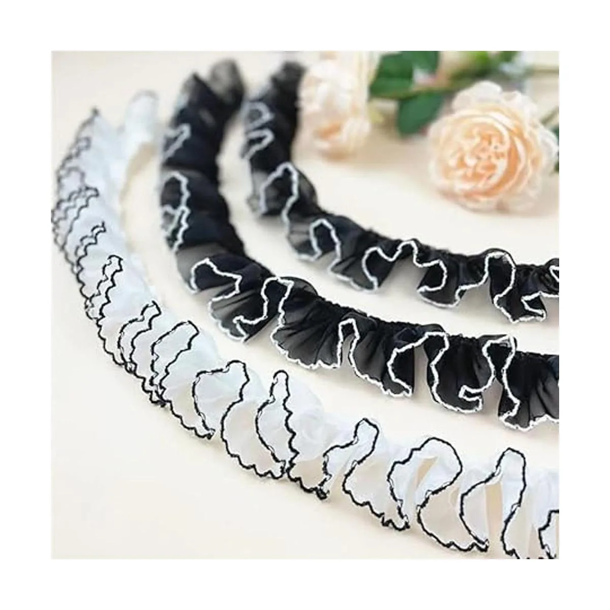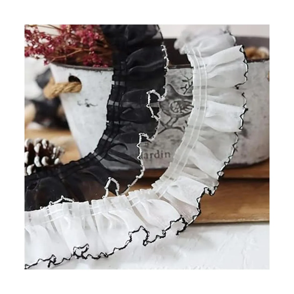 Kuasting Tela de encaje plisada con volantes de 6 yardas, gasa plisada en blanco y negro, decoración de vestido a juego, apliques de tela de tul, recorte, manualidades, costura, manualidades, decoración del hogar 6 yardas, negro