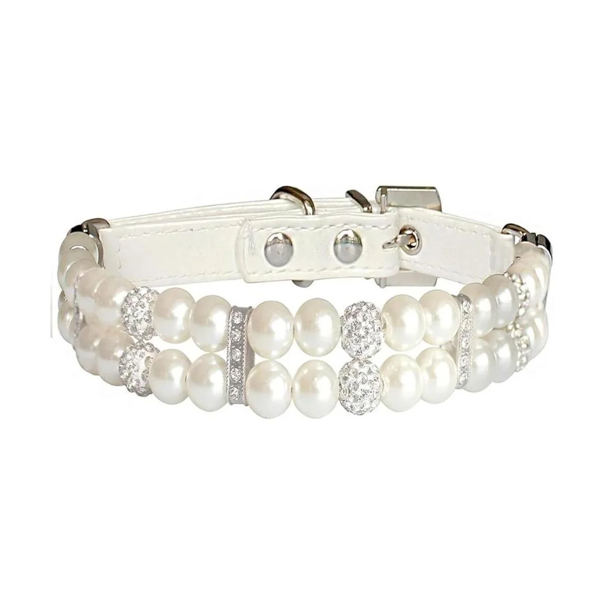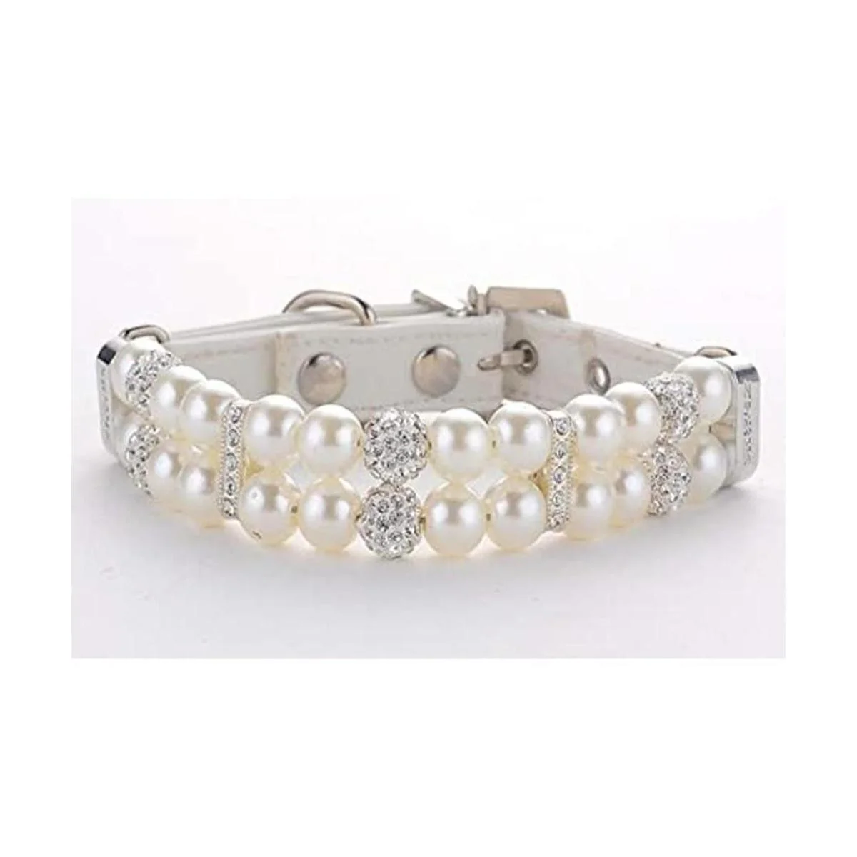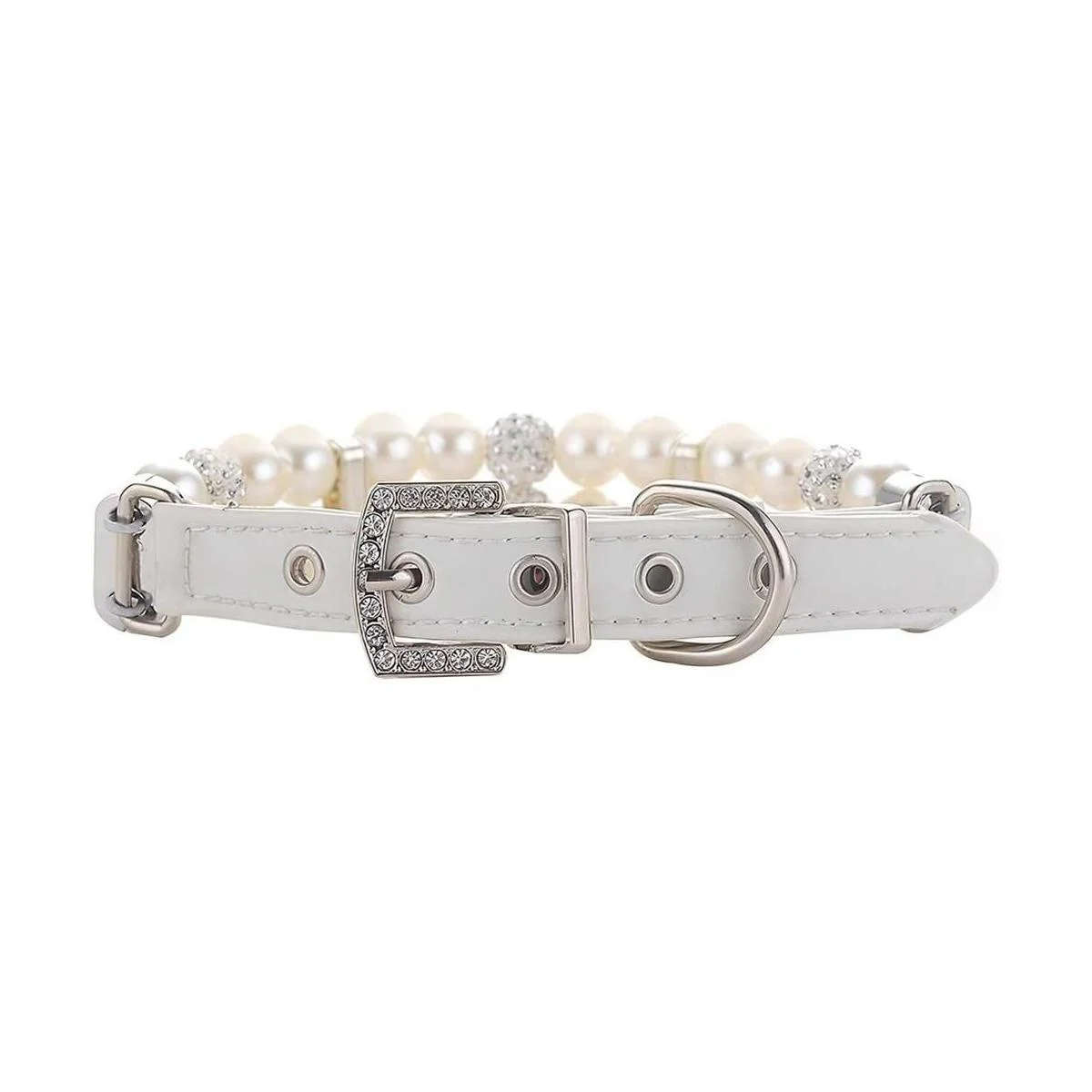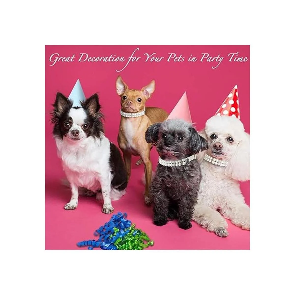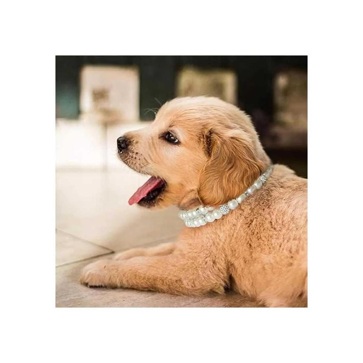 KUDES Collares de perlas para perros y gatos con diamantes de imitación de cristal, collar ajustable de piel sintética para mascotas pequeñas, bodas, fiestas de cumpleaños