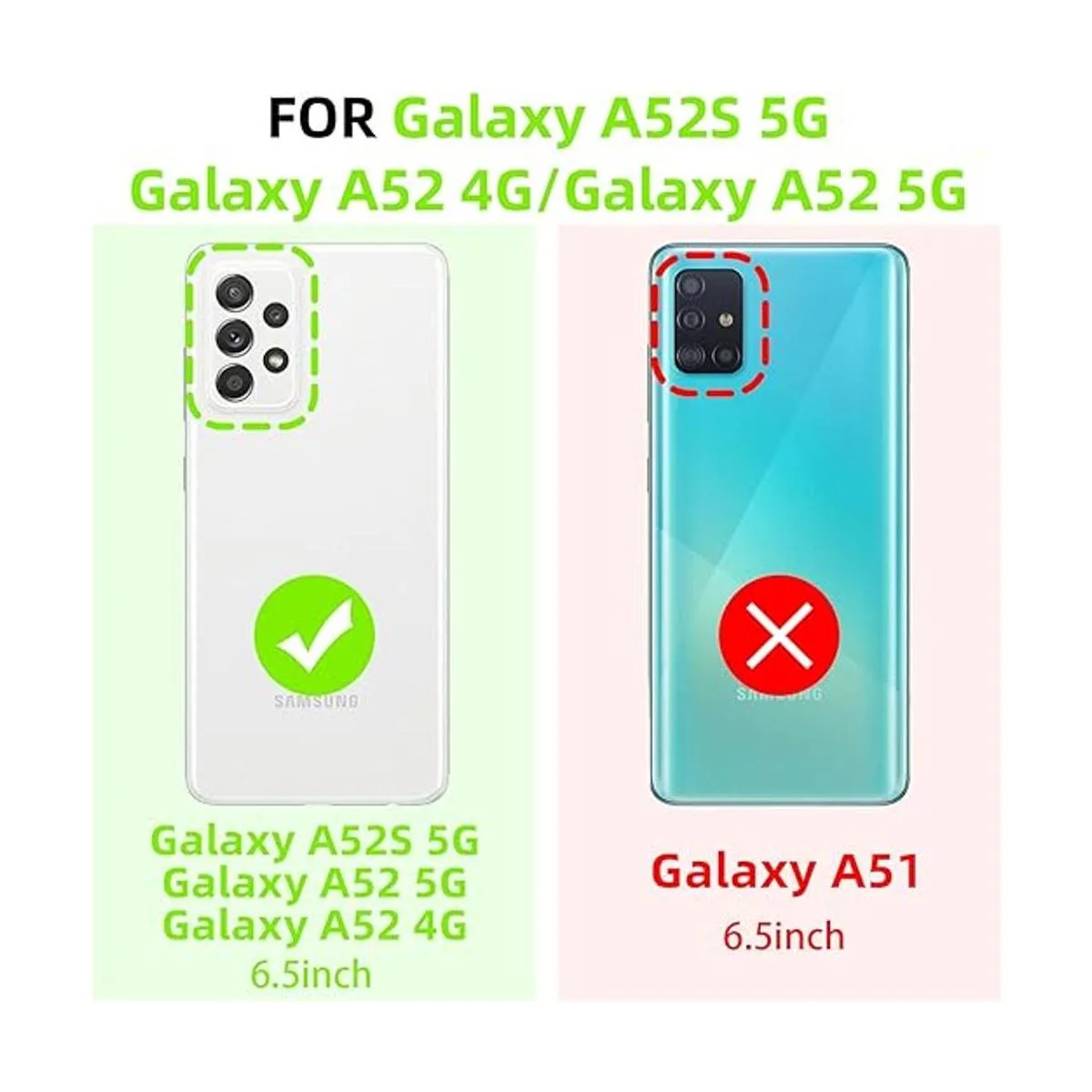 Compatible: diseñado específicamente para Samsung Galaxy A52. Presta atención a la segunda imagen de comparación de los modelos de teléfonos móviles proporcionados por nosotros, para elegir la funda Samsung A52.
