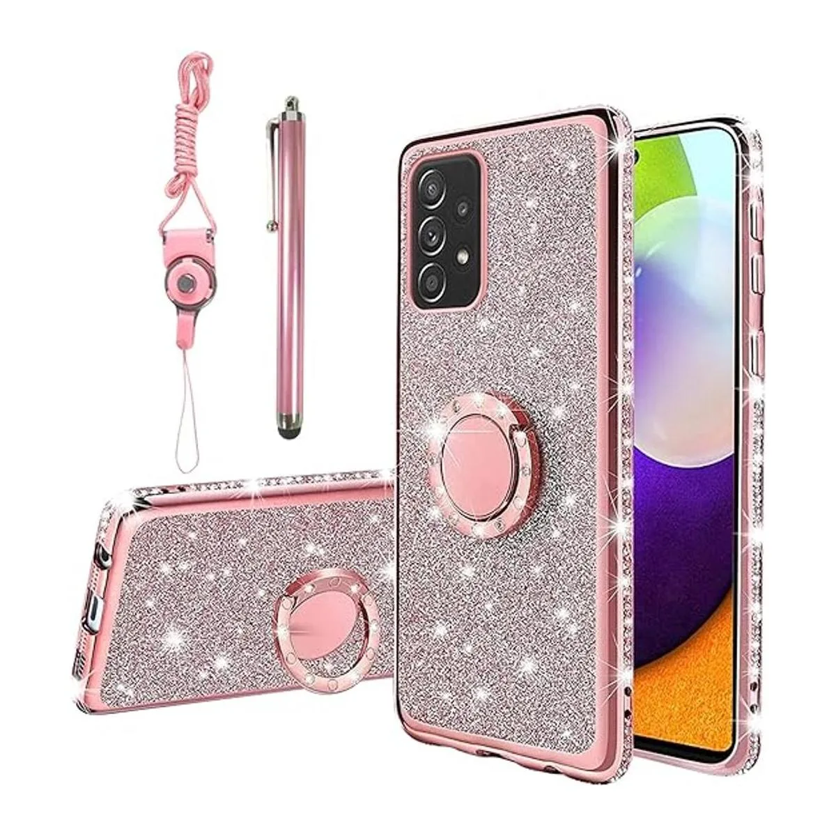 Soporte de anillo de 360: funda para Galaxy A52 5G con soporte único de anillo de diamante. Soporta rotación de 360 grados y plegado de 180 grados. No solo proporciona un agarre cómodo, también funciona como soporte para ver contenido en orientación horizontal.