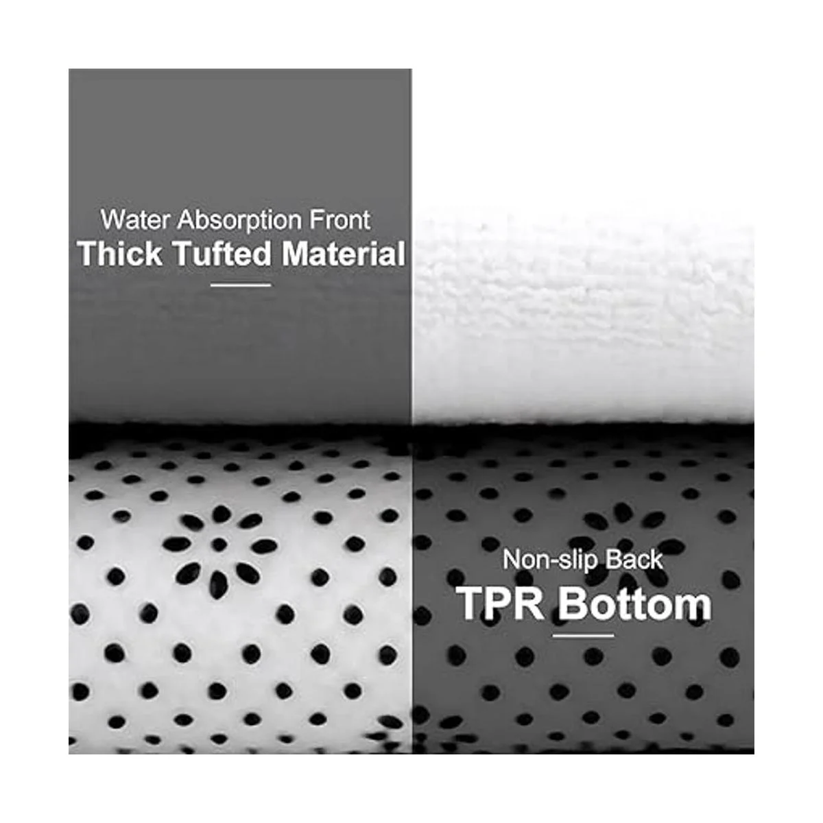 Material: terciopelo coral, absorbente, suave, duradero, antiarrugas y sin escamas, absorción de agua, tacto suave, no se descolora, la parte inferior del tapete utiliza una parte inferior de plástico, más antideslizante.