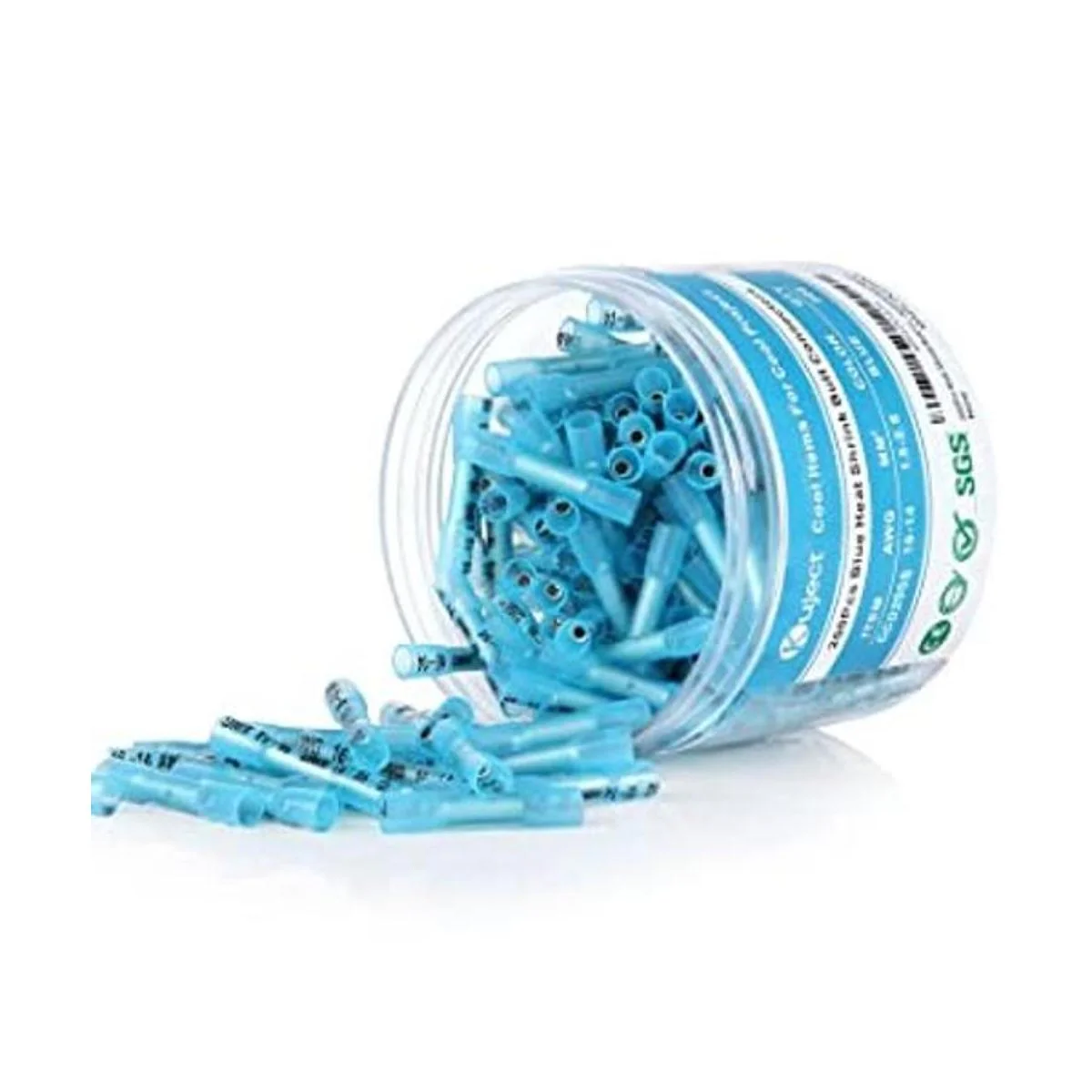 Kuject 200 conectores de extremo termorretráctiles azules de 1614 Awg, conectores de cable eléctrico de engarzado de cobre estañado, terminal de empalme impermeable aislado para automóvil, marina, estéreo