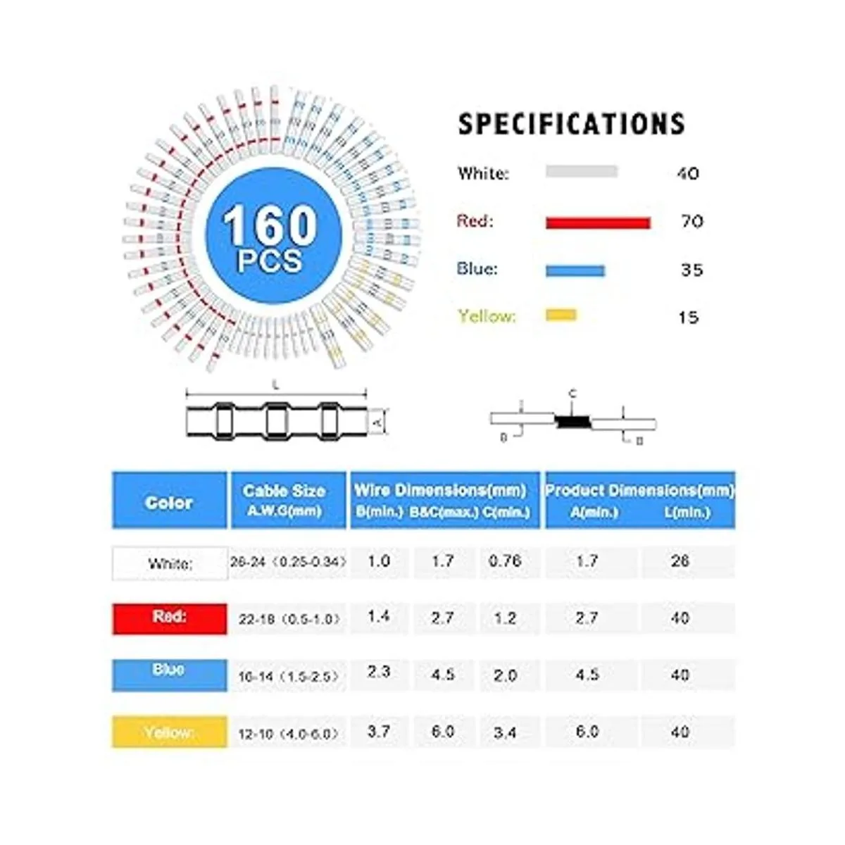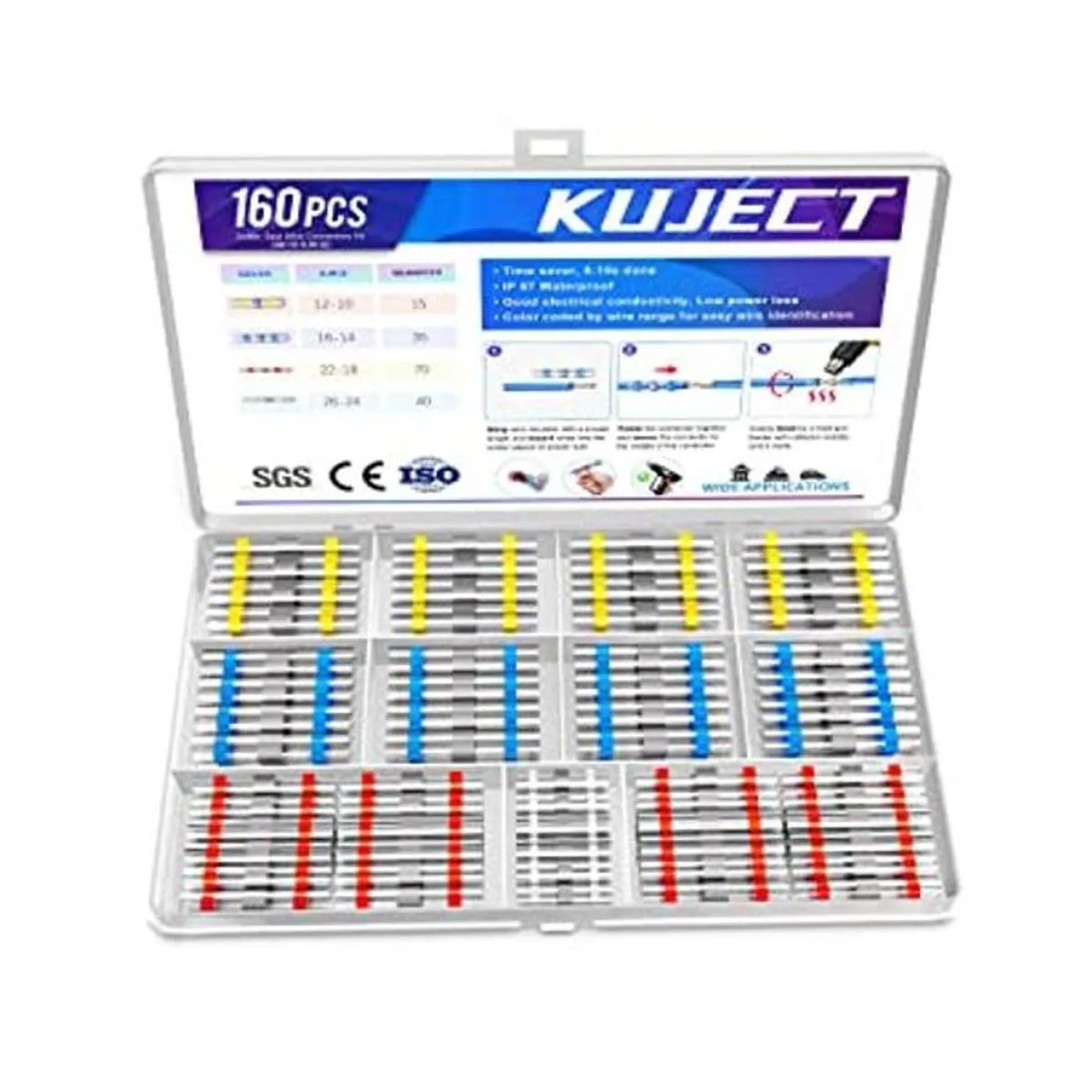 Kuject Kit de 160 conectores de alambre de sellado de soldadura, impermeable, sin soldadura, terminal termorretráctil aislado, empalme eléctrico para junta de alambre de barco marino automotriz