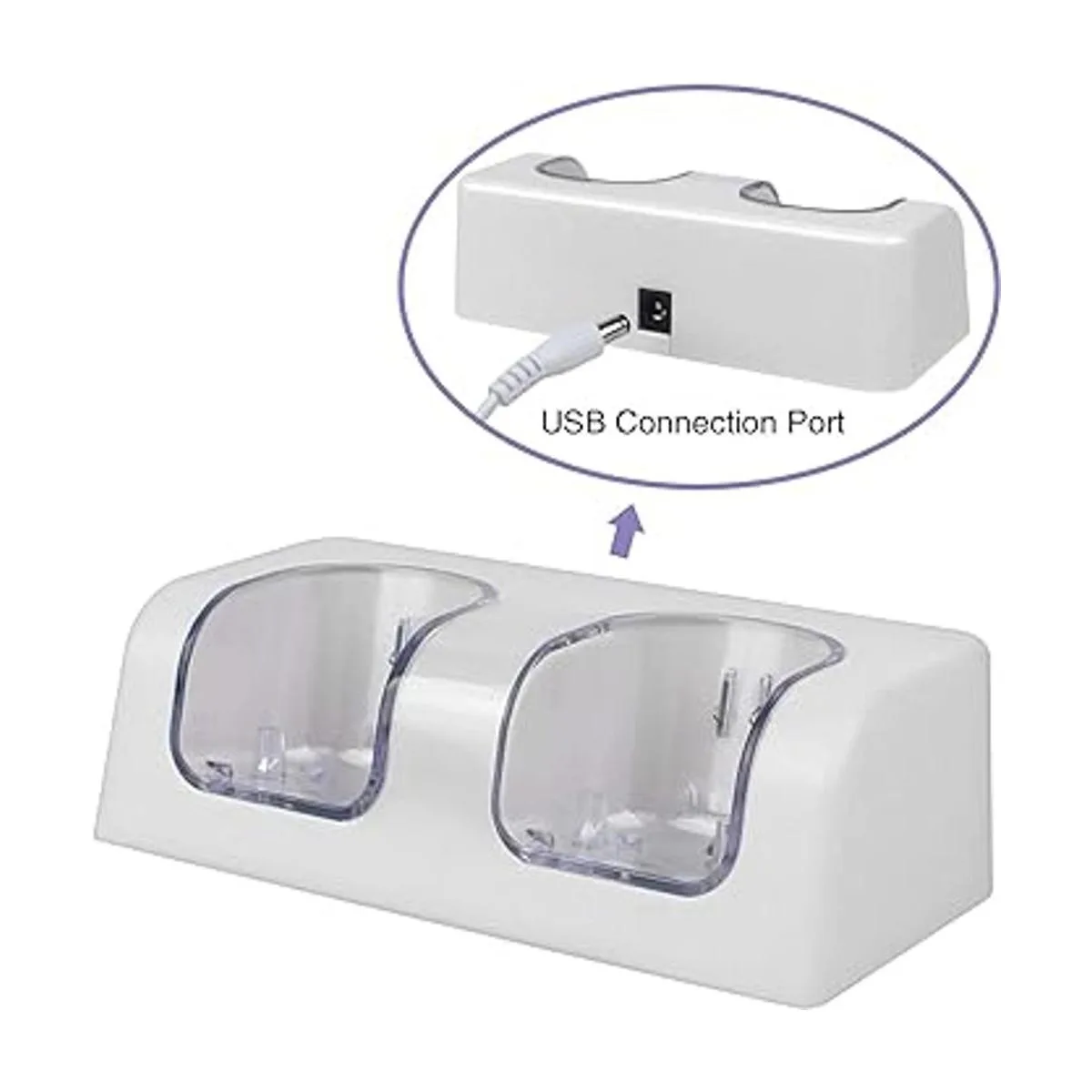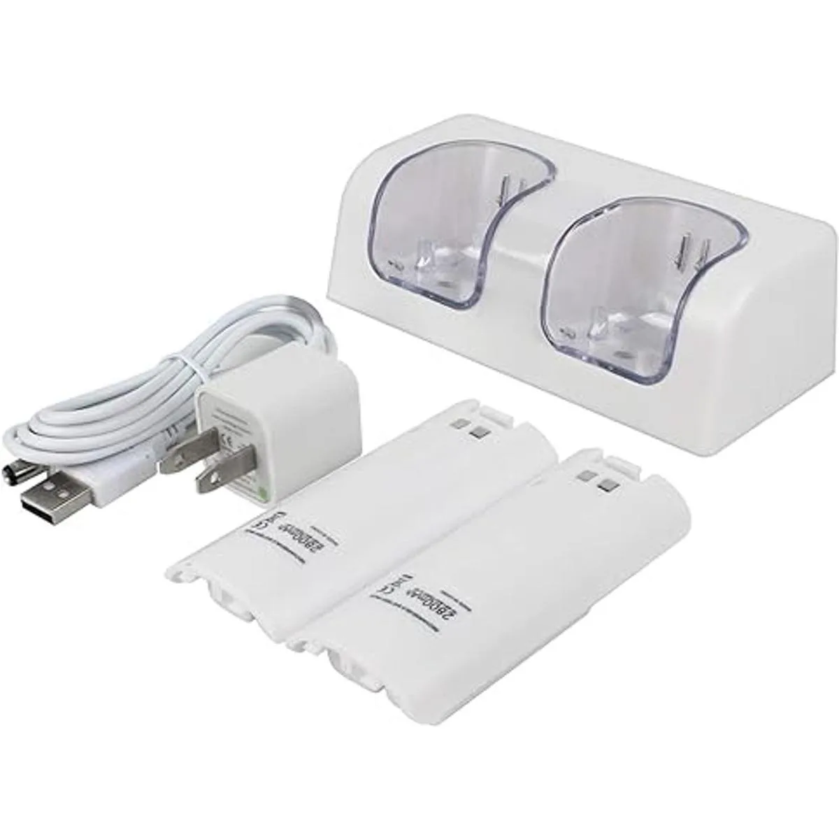 Kulannder Cargador de batería remoto Wii cargador de pared USB gratuito cable alargado Base de estación de carga dual con dos baterías recargables aumentadas para control remoto de juegos WiiWii U blanco