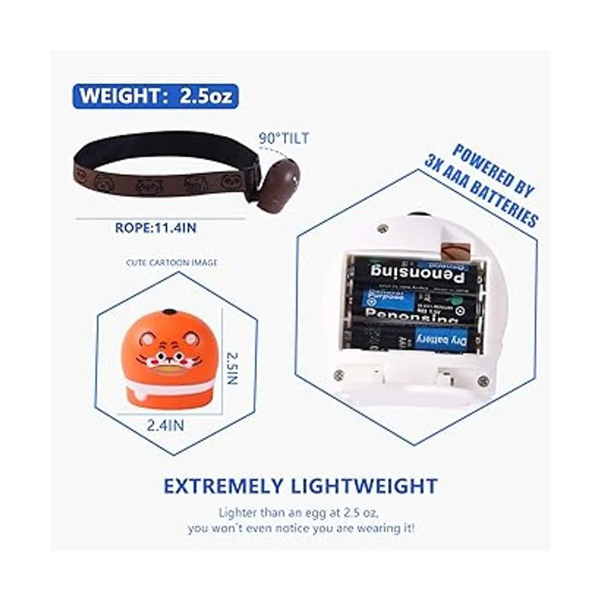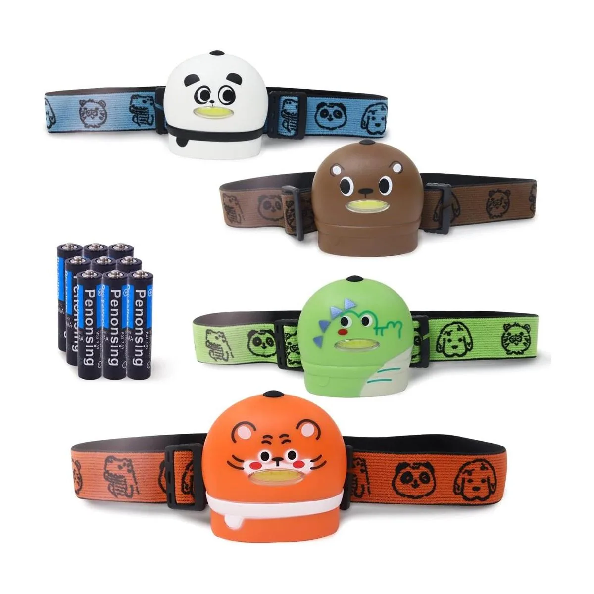 KunHe H4 Linterna COB para niños pequeños, paquete de 4 linternas de campamento para niños, 50 lúmenes, linda linterna de animal de dinosaurio para niñas y niños