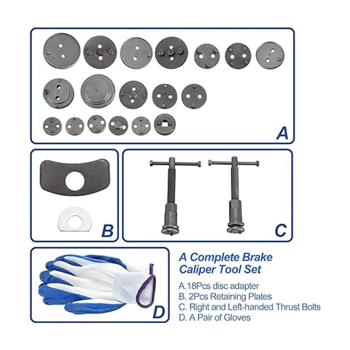 Aplicación: este kit de herramientas de pinza de freno de disco incluye 18 adaptadores que se adaptan a cientos de marcas y modelos de vehículos