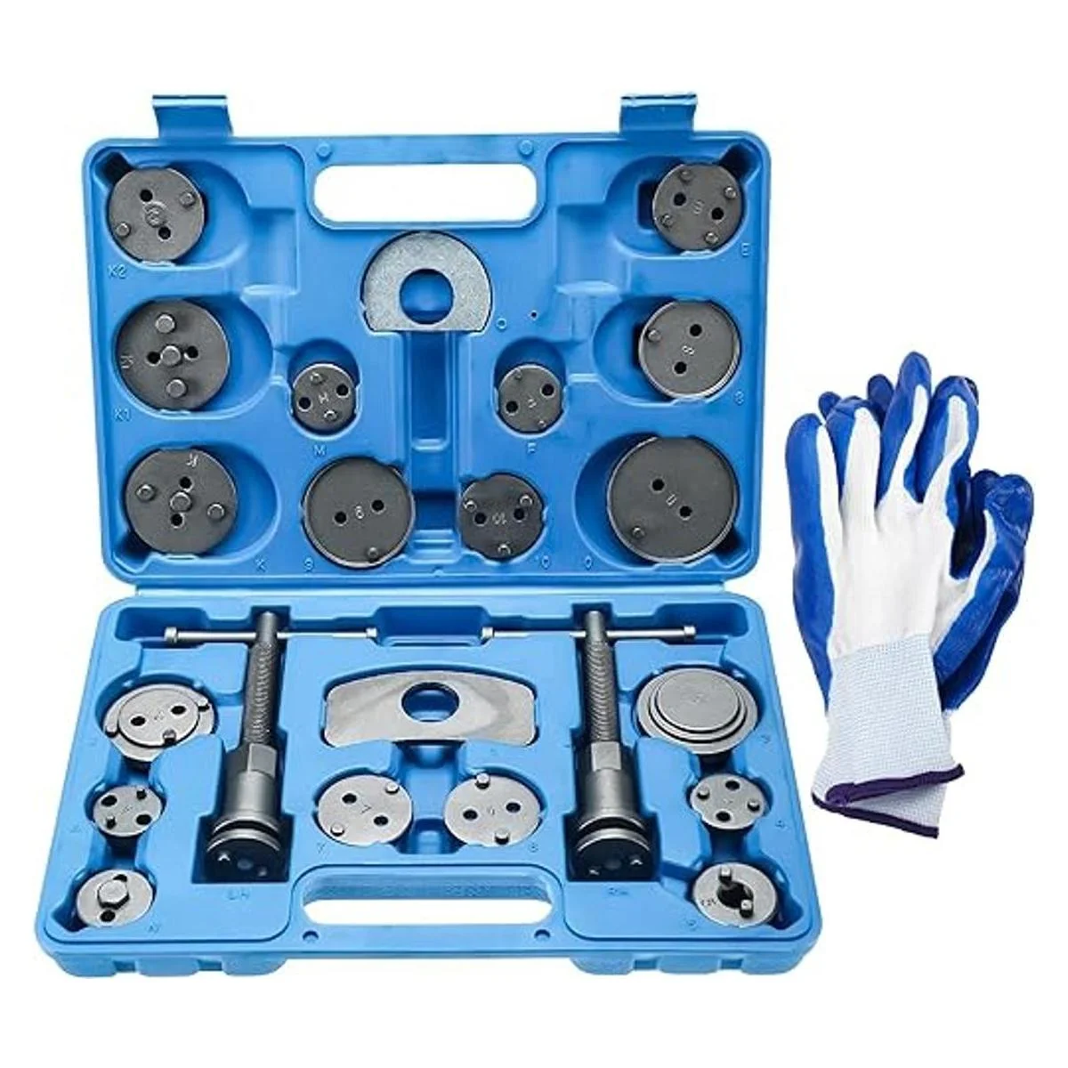 KUNTEC Juego de 24 herramientas de rebobinado de pistón de freno de disco, compresor de pinza de viento para reinicio de repuesto de pastillas de freno