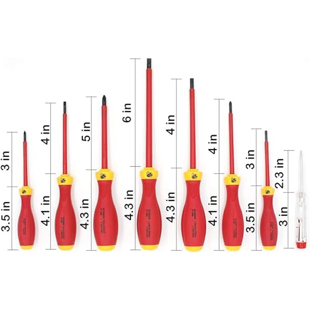 Diferentes tamaños KUNTICA 9 piezas de destornilladores aislados para electricista con 3 destornilladores Phillips y 4 destornilladores ranurados, también contiene comprobador de voltaje y desmagnetizador/magnetizador. Son capaces de satisfacer tus diversas necesidades.