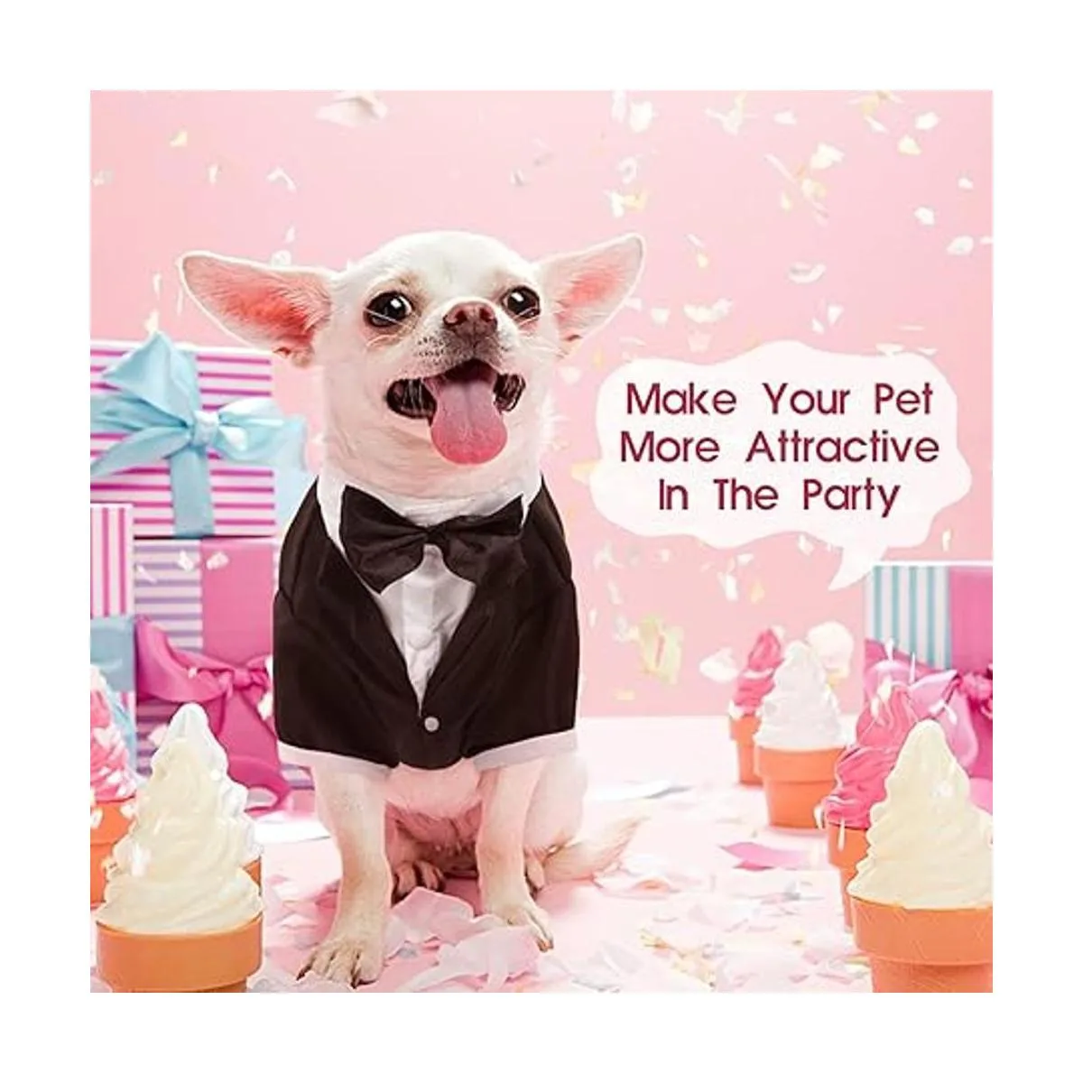 Kuoser Camisa para cachorro, ropa para perro pequeño, traje elegante con corbatín, camisa de boda, esmoquin formal con corbata negra, traje de corbatín para perro príncipe
