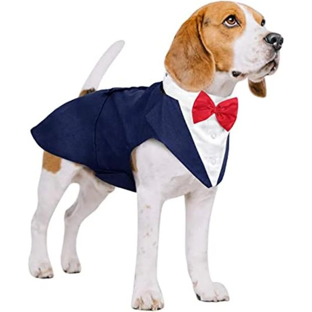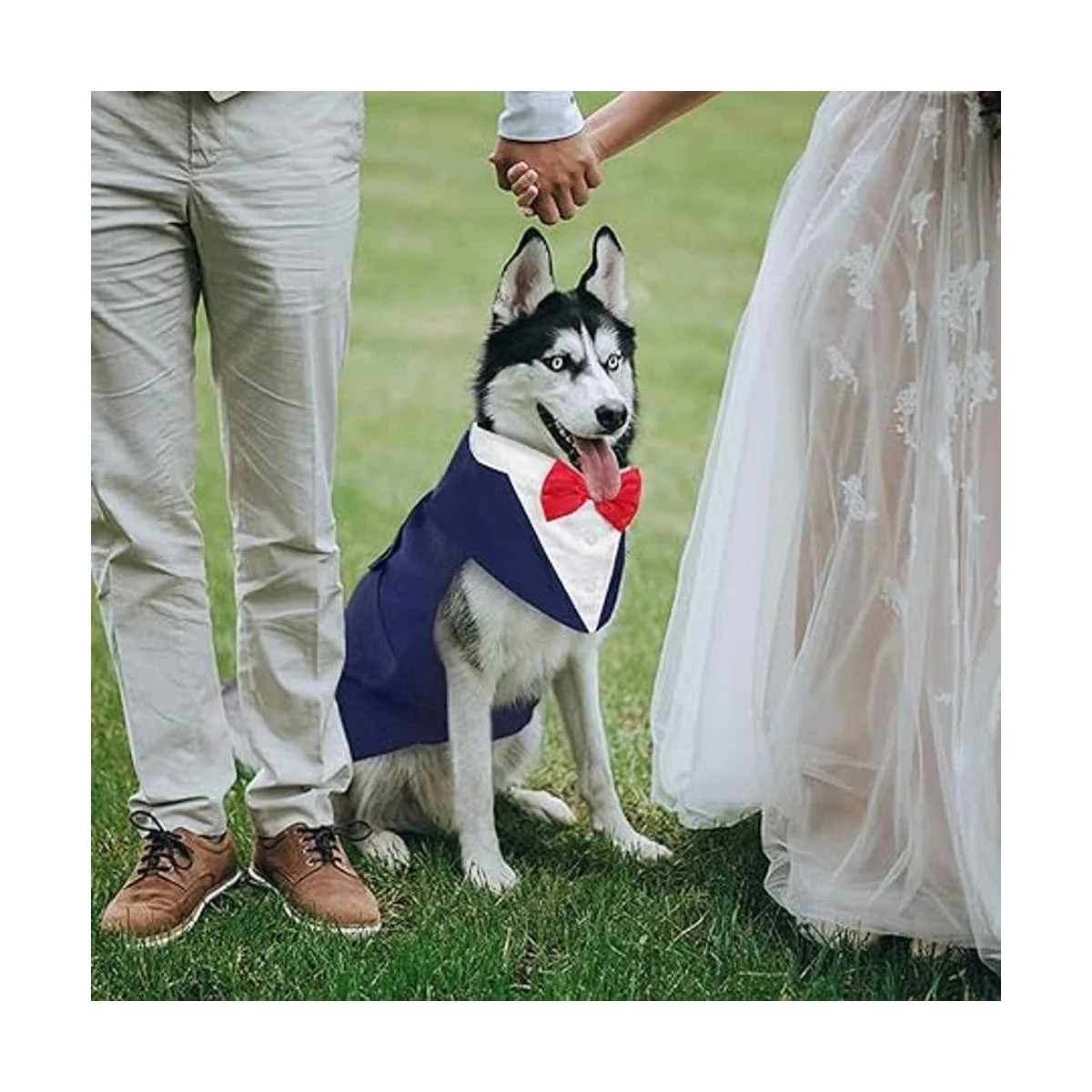 Juego de dos piezas: Juego de paliacate y esmoquin de boda formal para perro, se pueden utilizar por separado. Paliacate para un uso cómodo con cuello o moño junto con botones decorativos para mostrar la personalidad de tu mejor amigo.