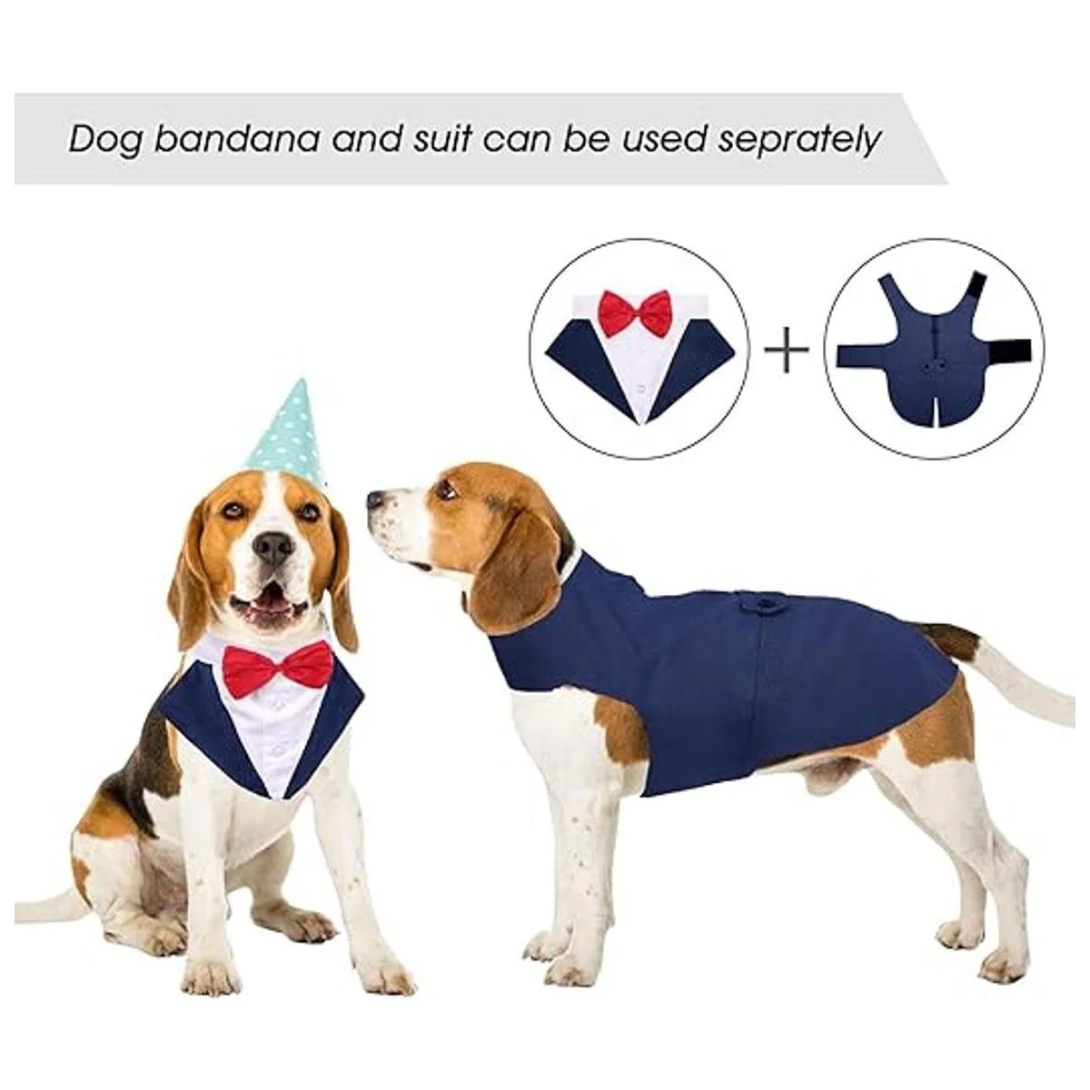 Kuoser Dog Tuxedo Dog Suit and Bandana Set, Dogs Tuxedo Wedding Party Suit, Dog Prince Wedding Bow Tie Shirt Formal Dog Wedding Attire for Large and Medium Dogs Golden Retriever Samo Bulldogs