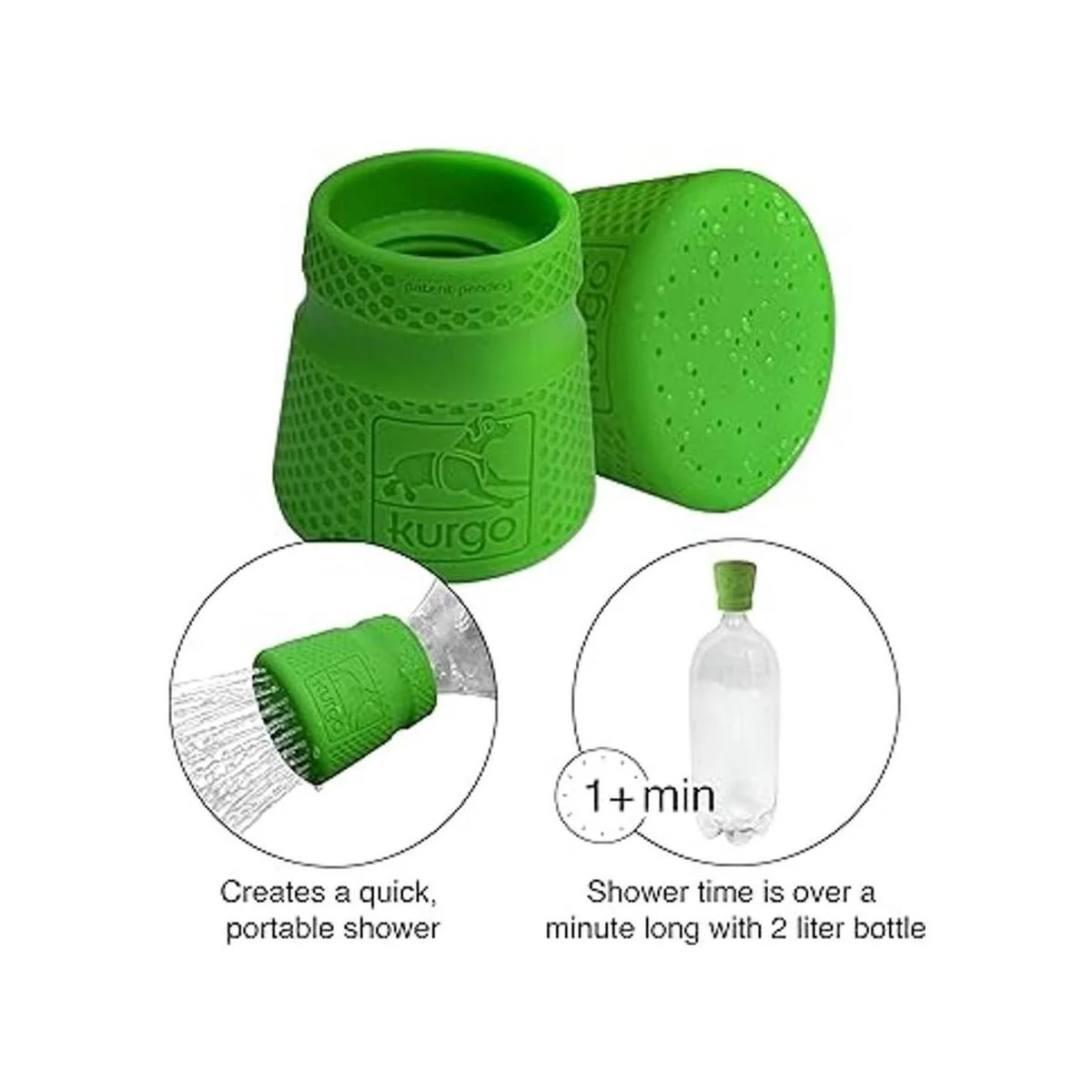 Kurgo Ducha portátil al aire libre para perros, herramienta de aseo de perros, equipo de baño de mascotas, accesorios de viaje para perros, senderismo, playa o suministros de campamento para mascotas, funciona con botella de refrescos de 2 litros, ducha de barro para perros