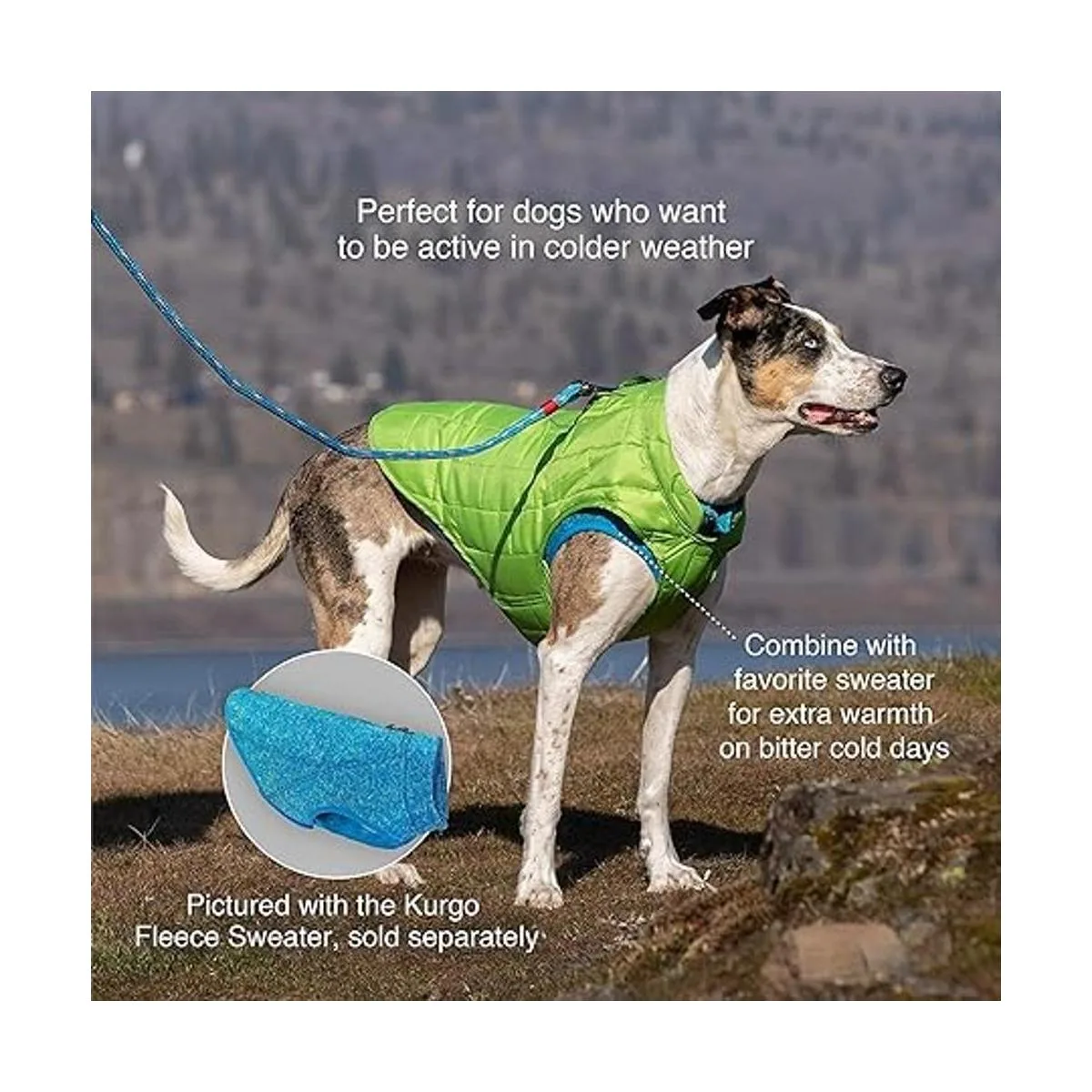 Kurgo Loft Dog Jacket Reversible Fleece Winter Coat Cold Weather Protection Wear with Harness Or Additional Layers Reflective Accents, Leash Access, Water Resistant