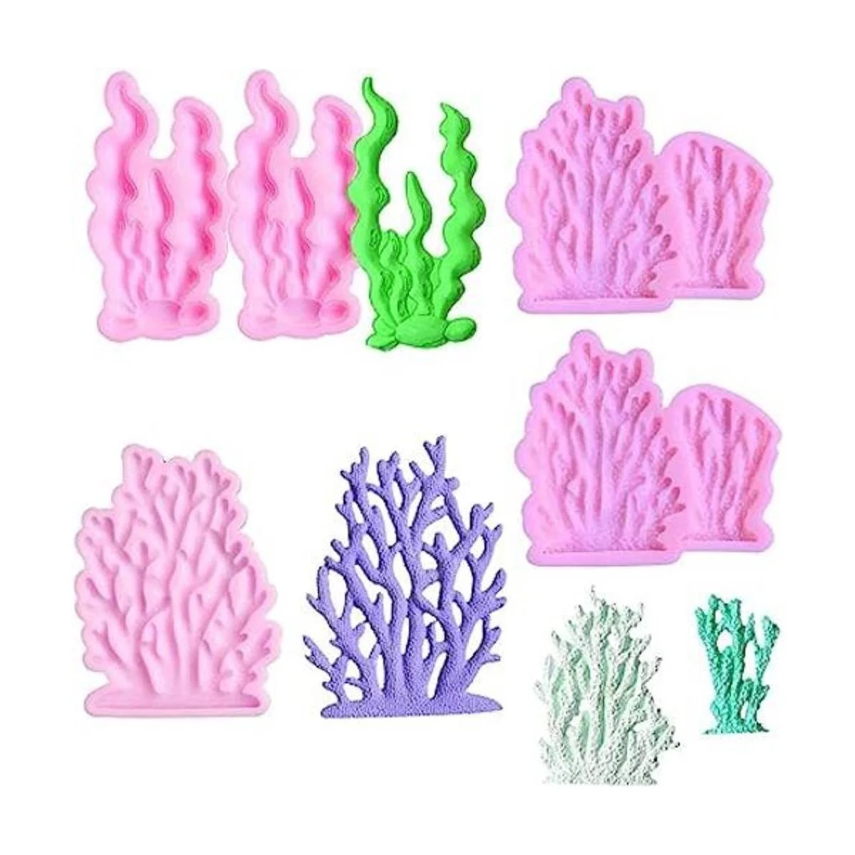 KuuGuu 5 moldes de silicona para algas de coral, con forma de coral, para chocolate, criaturas marinas, dulces, azúcar, decoración, resina, arcilla polimérica, manualidades, joyas