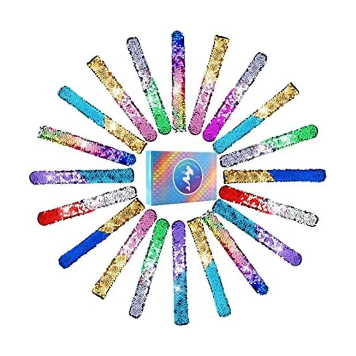 Package include: random 25 pcs magic sequins mermaid slap bracelets single size:213cm / 8.31.2