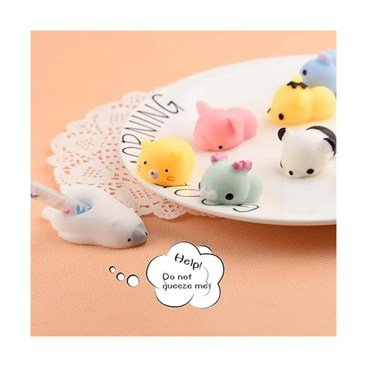 El paquete incluye: 20 mini animales mochi no apto para niños menores de 3 años para jugar
