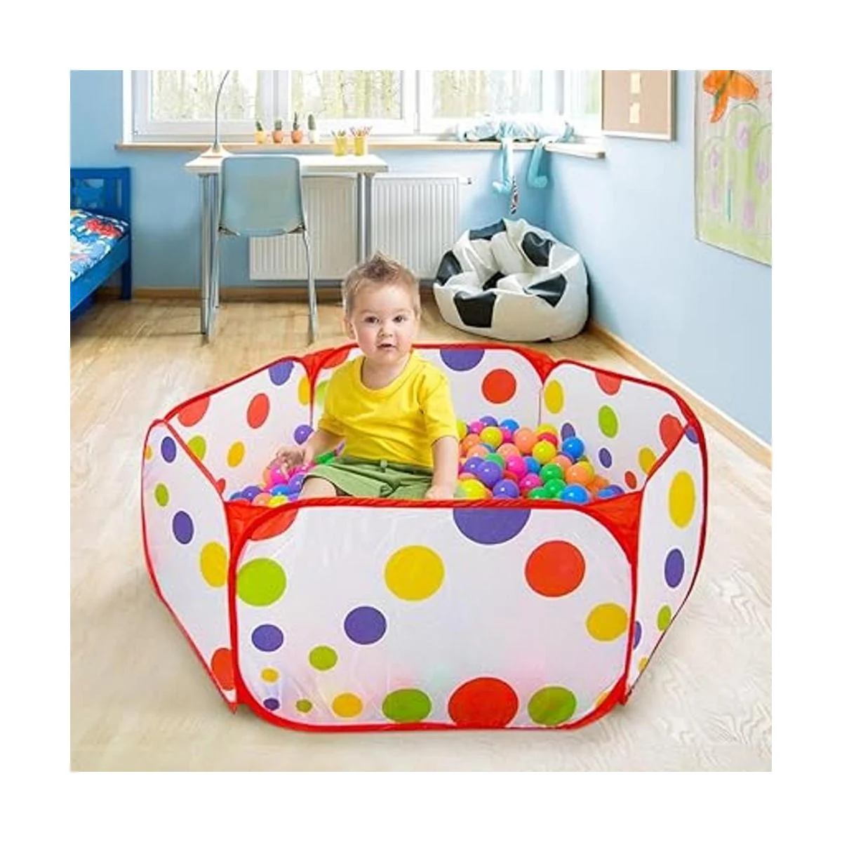 El colorido diseño hexagonal de lunares para niños es atractivo para los bebés; puede mejorar su capacidad para reconocer los colores y su coordinación física bolas no incluidas