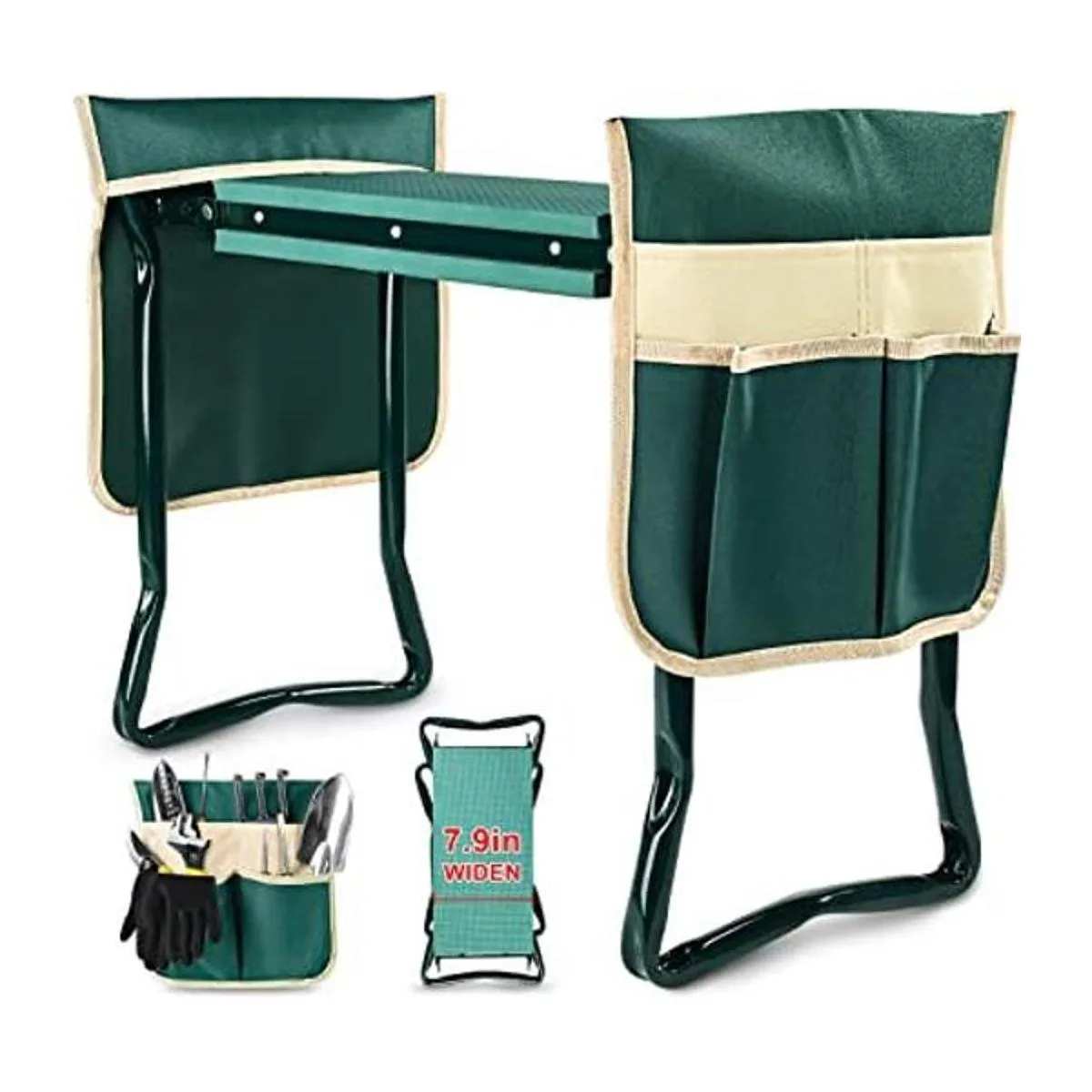 KVR Rodillera y asiento de jardín mejorados con almohadilla de rodillas suave gruesa y amplia, taburete plegable resistente con 2 bolsas de herramientas, regalos de jardinería para mujeres, mamá, hombres y personas mayores