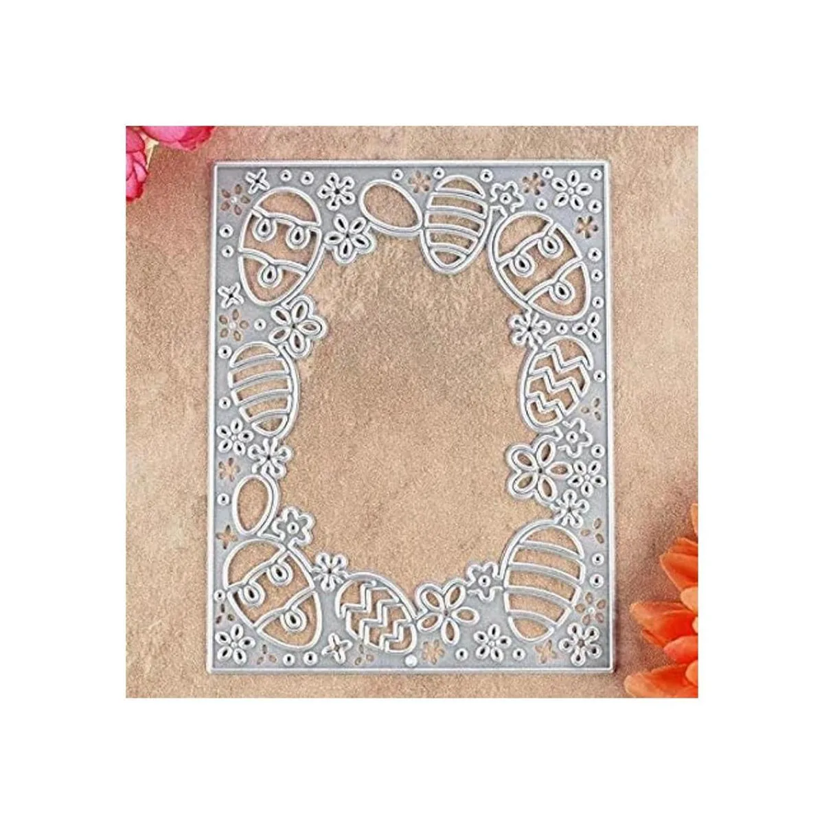 Kwan Crafts Huevo Flores Marco Feliz Pascua Decoración Metal Troquelado troquelado troqueles para DIY Scrapbooking Photo Album Embossing Folder