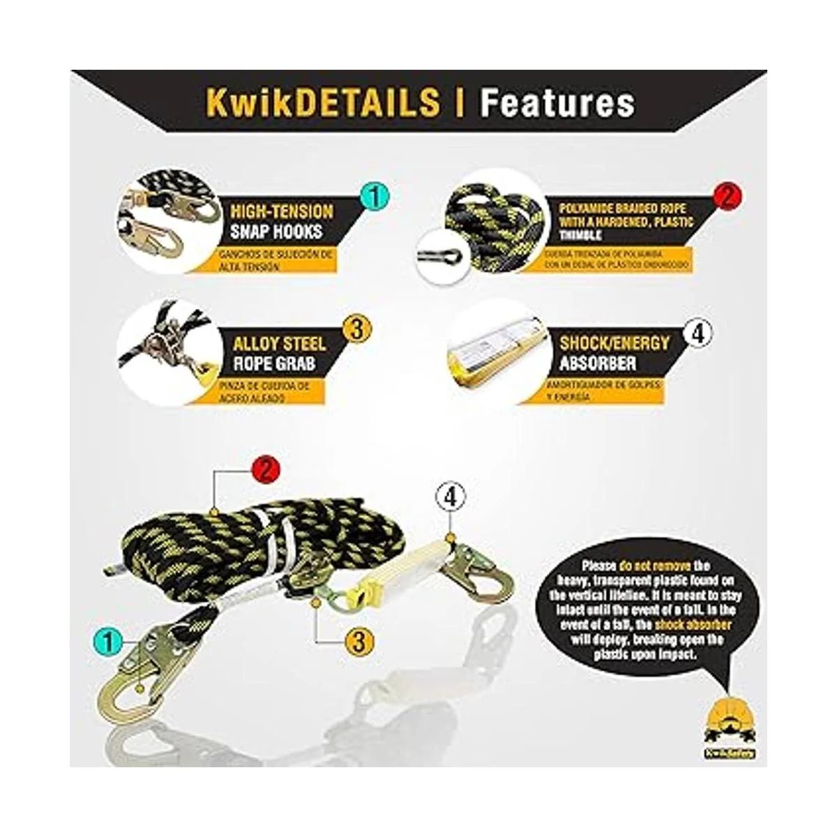 La seguridad que necesitas, el estilo que quieres: los productos KwikSafety están diseñados y enviados con orgullo desde Charlotte, NC, Estados Unidos. Nuestro equipo con sede en Charlotte responderá rápidamente a todas y cada una de tus preguntas e inquietudes sobre tu pedido en inglés o español, si habla Espanol linea vida vertical, cuerda proteccion anticaida, linea vida seguridad. Los productos KwikSafety son productos de seguridad premium diseñados por estadounidenses con nivel de calidad estándar estadounidense. Si tienes un problema, tenemos una solución para ti.
