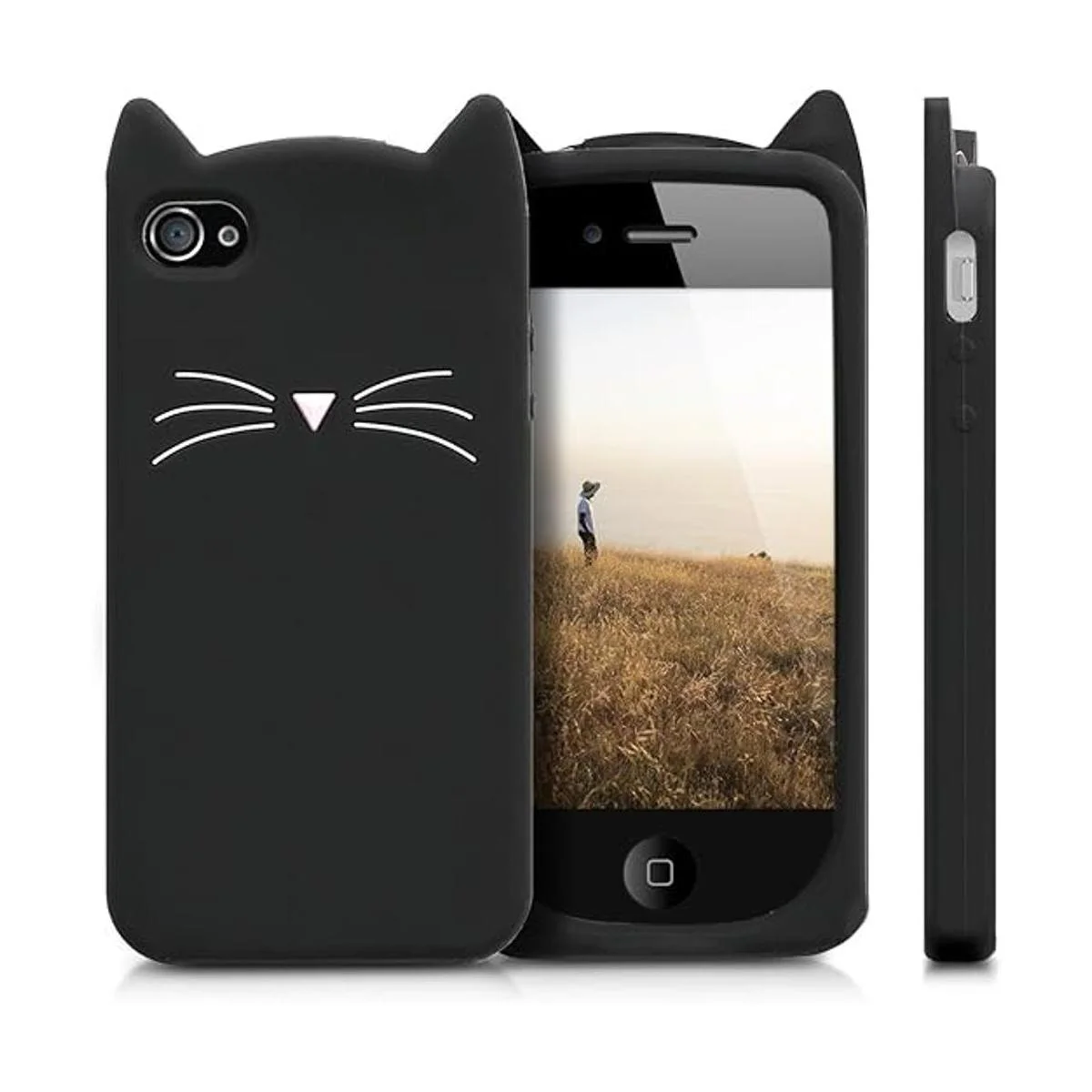 kwmobile Carcasa de silicona para iPhone 4 y 4S, diseño de gato, color negro y blanco
