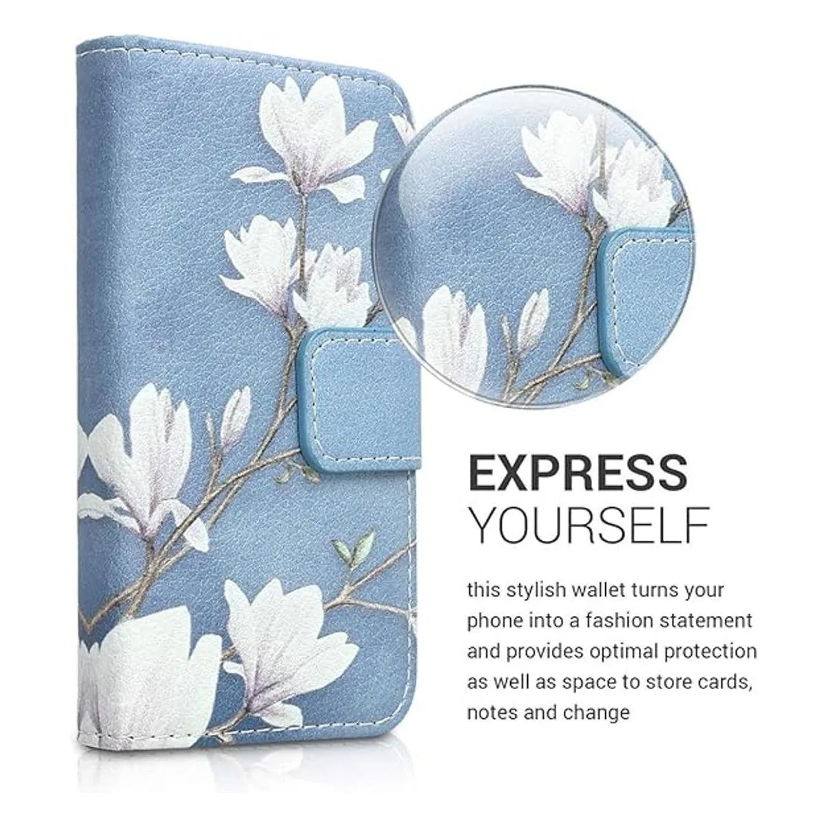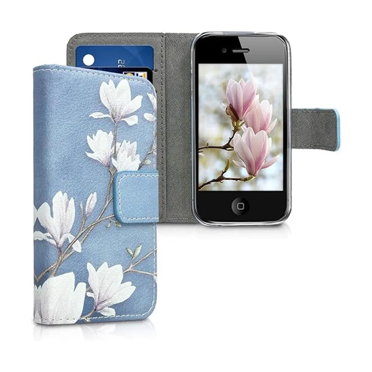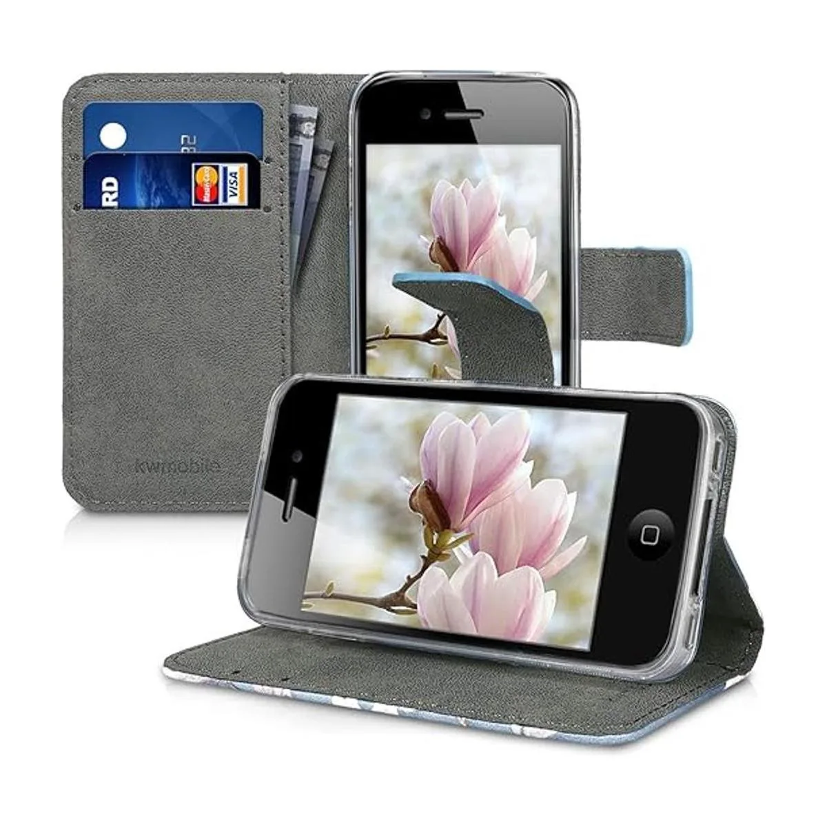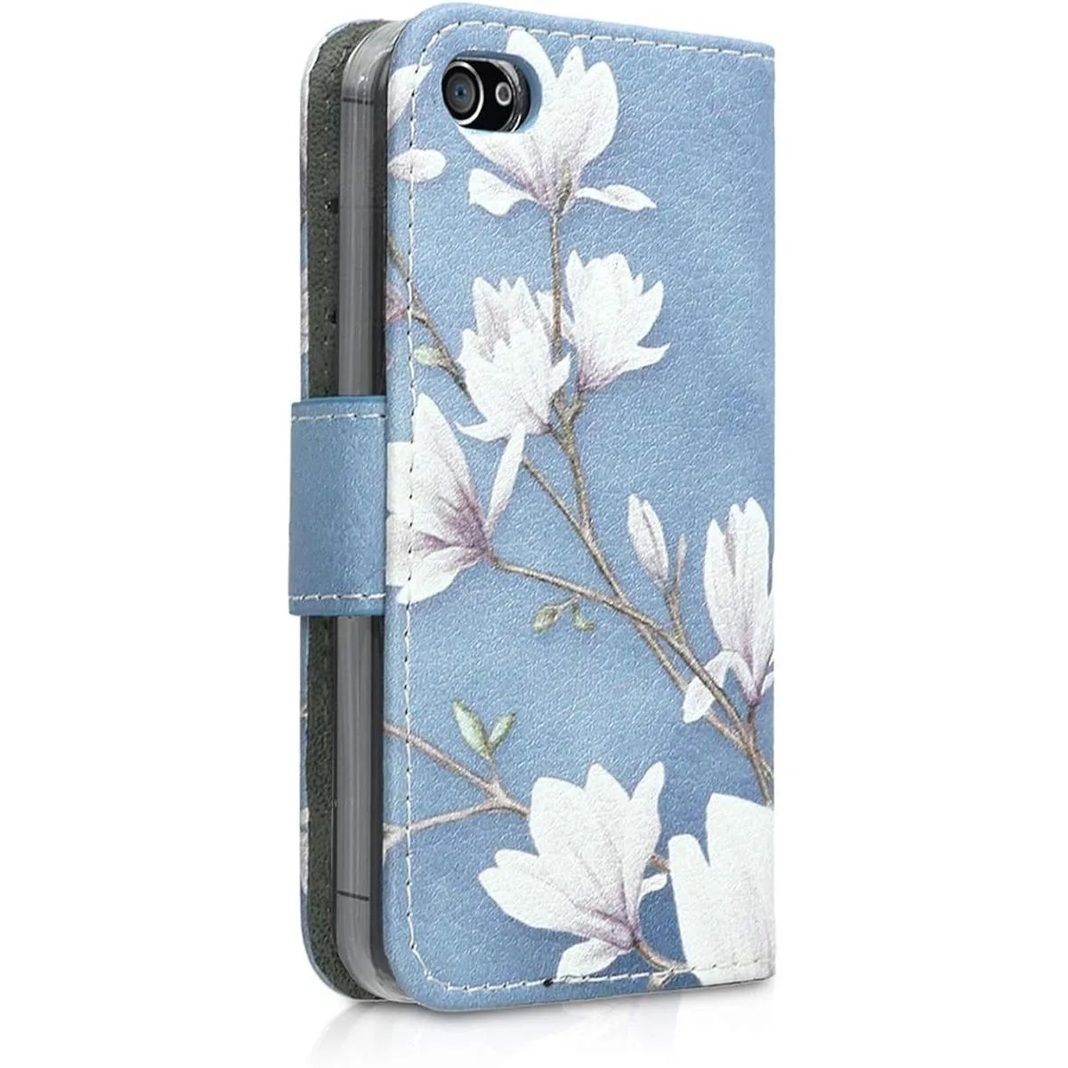 kwmobile Funda con tapa para iPhone 4 y 4S, diseño de magnolias con texto Magnolias, color gris