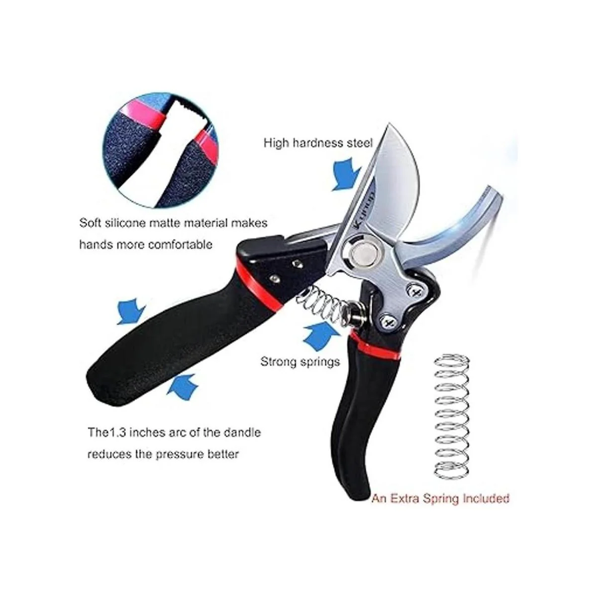 Cuchillas de alto rendimiento: las cuchillas de las tijeras de jardinería adoptan acero SK5 profesional que es ultra fuerte, afilado, resistente al óxido y a la corrosión. Las tijeras de podar ahorran tiempo y facilitan la poda. Es un uso ideal para recortar y cortar el arbusto de rosas, arbustos, setos, tallos y brunch ligeros.