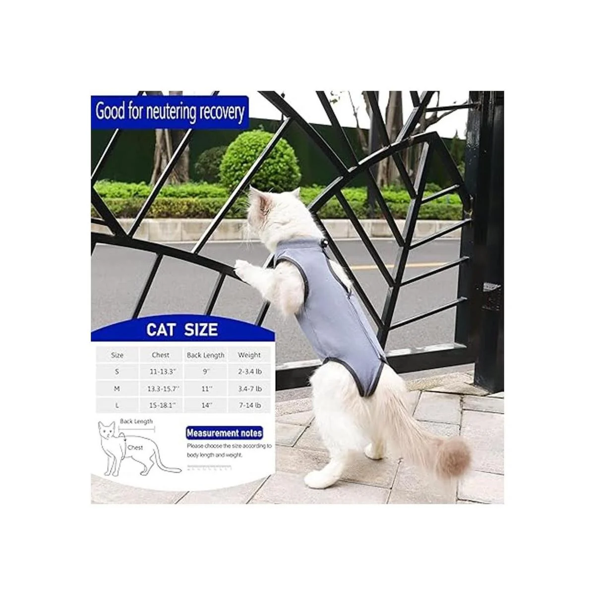 2. Tamaño : S: Peso 23.4 libras y longitud de espalda 9 pulgadas, M: Peso 3.47 libras y longitud de espalda 11 pulgadas, L: Peso 714 libras y longitud de espalda 14 pulgadas para el mono de gato para gatos después de la cirugía